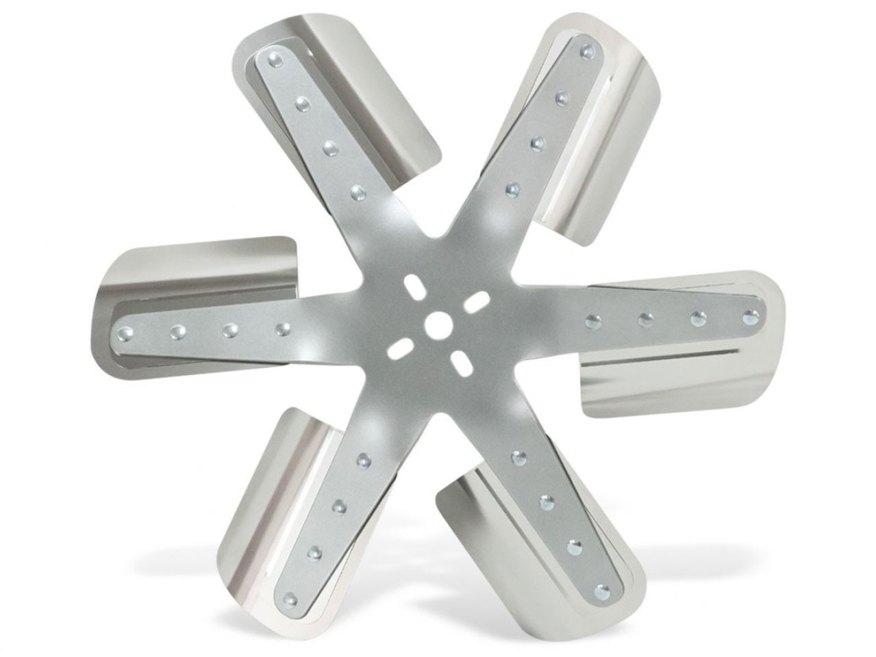 16-inch Reverse Rotation Stainless Steel Silver Flex Fan with premium silver finish reduces engine drag at higher rpm for better performance and fuel economy.