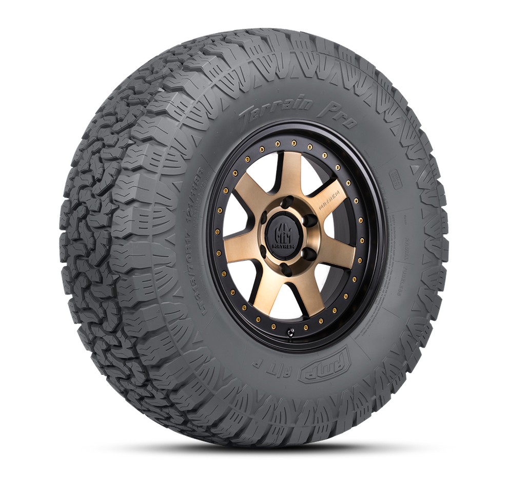 THE ALL-NEW AMP TERRAIN PRO A/T DELIVERS A LONGER TREAD LIFE AND WITHSTANDS DEMANDING ENVIRONMENTS. WITH DEEP MULTI-FUNCTION TREAD GROOVES IT PROVIDES ENHANCED TRACTION IN A WIDE VARIETY OF CONDITIONS WHILE DELIVERING A SMOOTH AND CONTROLLED RIDE. A BROAD SELECTION OF SIZING AND A 60 000 MILE WARRANTY DRIVE THE TERRAIN PRO A/T TO BE THE LEADER OF THE PACK.