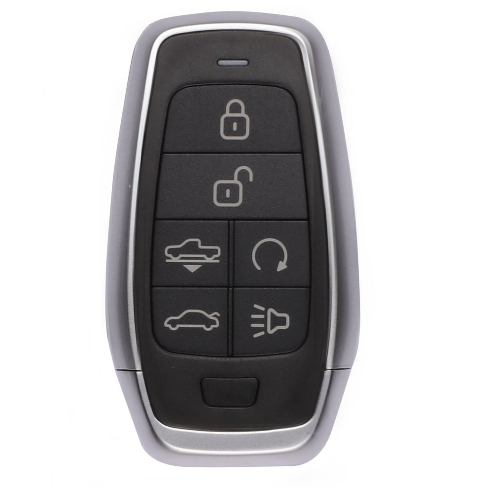 Autel universal programmable 6-button IKEY. Lock, Unlock, Air Suspension, Remote Start, Trunk, Panic. Use the Autel MaxiIM KM100 to program IKEY to replace an expansive list of OE Smart Keys, including those used by Hyundai, Nissan, Chrysler, Honda, General Motors, and select BMW, Audi, Volkswagen, and Volvo vehicles. Meets or exceeds industry and regulatory standards. Compatible with vehicle systems using 315/415 MHz and 868/915 MHz. Capable of Ultra-Long Range (40 meters/130 feet) frequency transmission. Battery (CR2032) and Emergency Blade not included. One-year limited warranty.