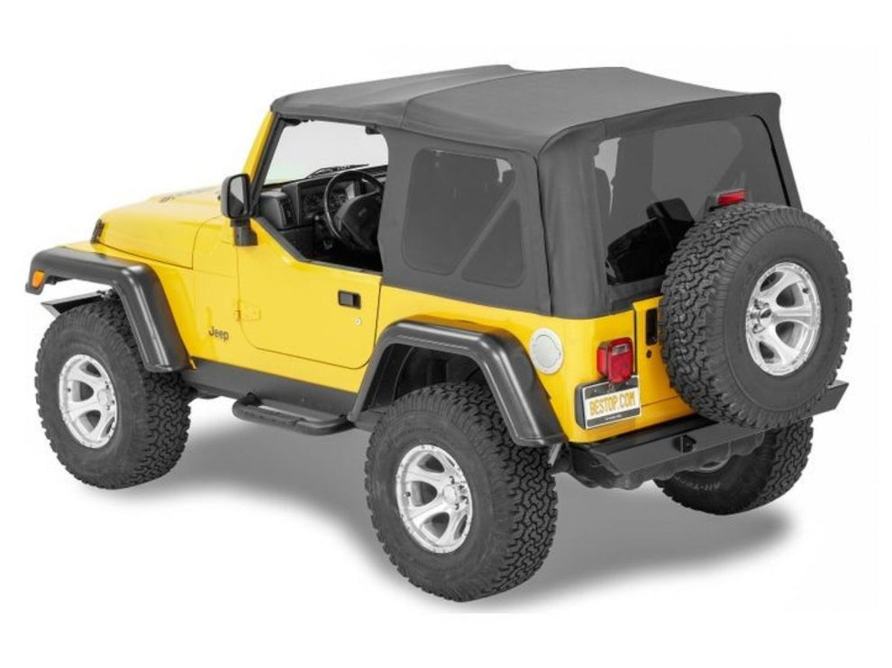 - Features factory-style composite door surrounds, windshield header assembly, Bestop-exclusive Top Arch Bar, Quick-release Bow Knuckles and adjustable tensioning (TJ and JK)