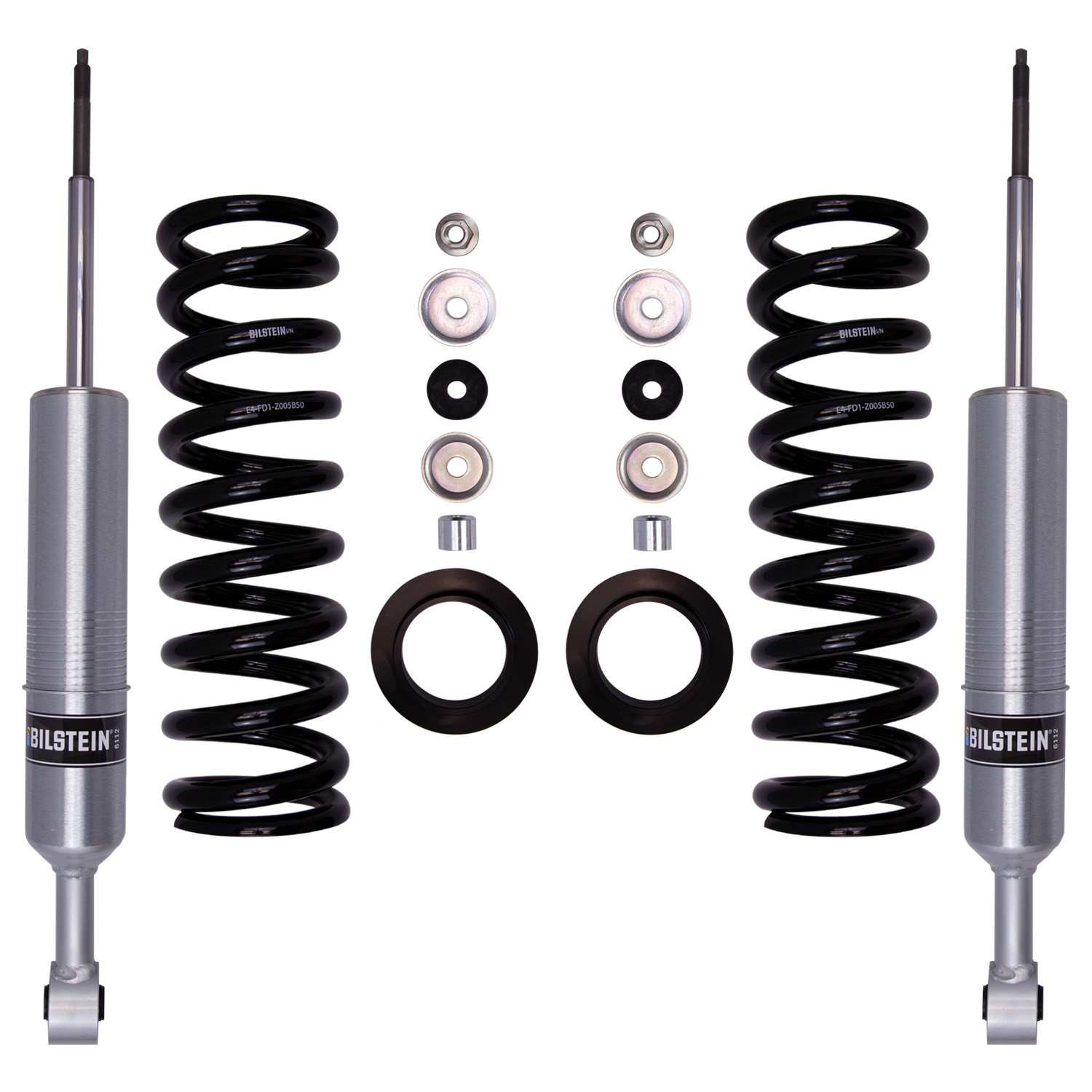 Bilstein B8 6112 leveling kits are designed to provide more ground clearance, allow for larger tires, and increase wheel travel. Multiple snap-ring grooves in the body allow for different spring seat positions, providing 0-2.75 inches of front lift (depending on application). These kits consist of (2) 60mm shock absorbers combined with (2) custom matched cold wound coil springs and (2) billet aluminum spring seats. The large 60mm digressive piston allows for increased damping control for optimal on-road and off-road capabilities. Experience the legendary Bilstein off-road experience with the best direct fit spring and shock kit for your light truck or SUV.