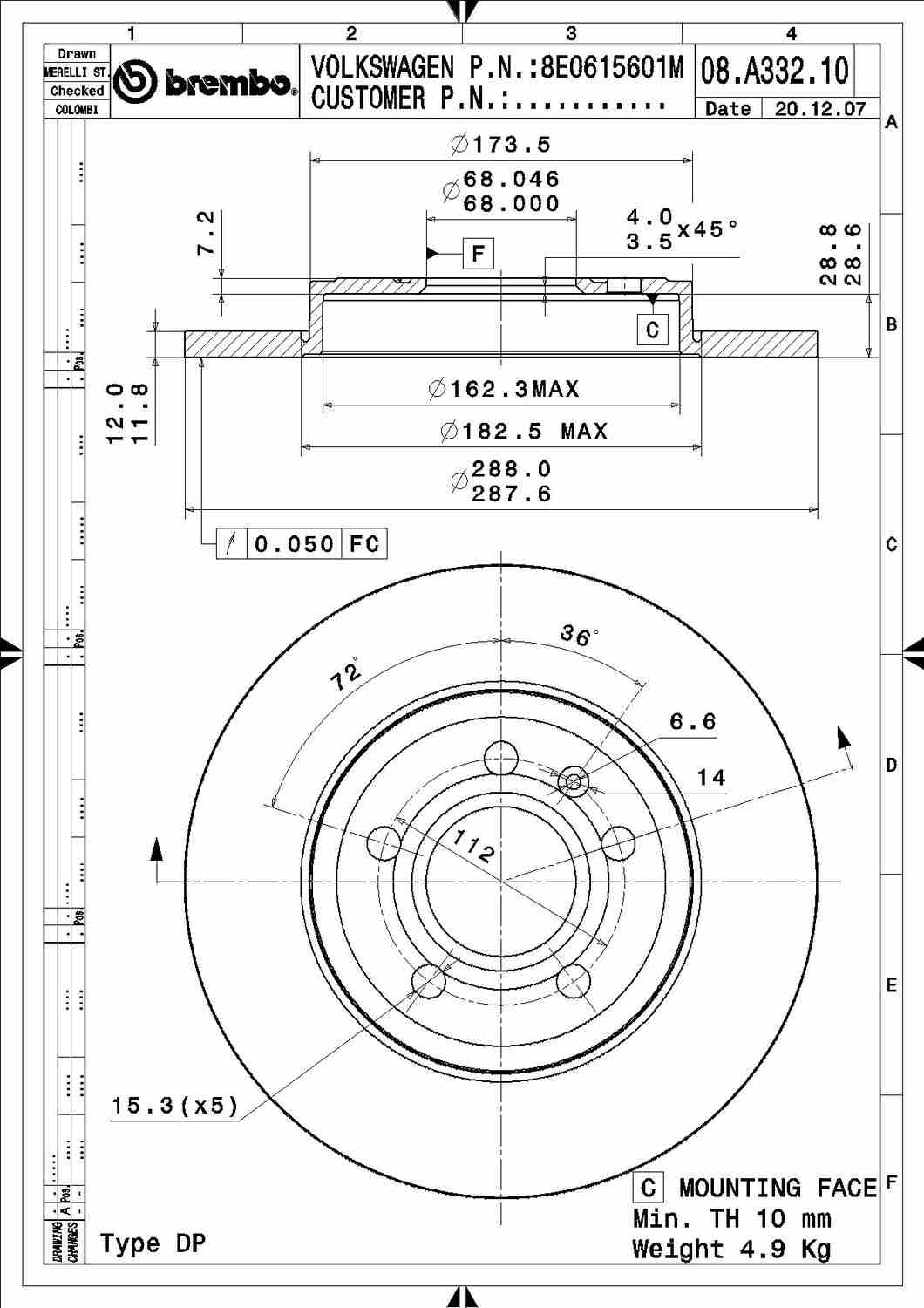 Brembo 08.A332.10 Disc Brake Rotor