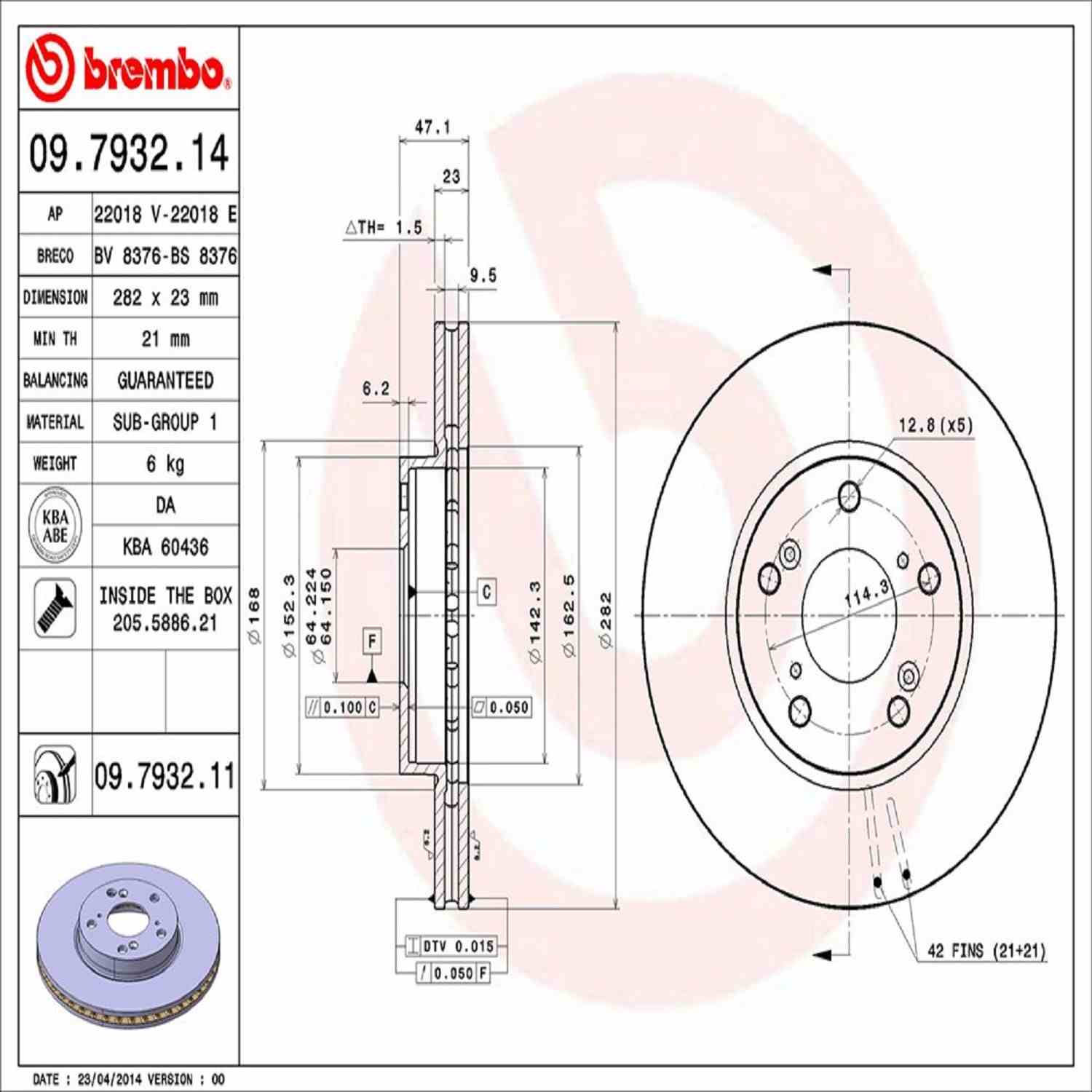 Bremboâ¬"s UV Coated rotors are developed as direct replacement that meets or exceeds OEM specifications. Environmentally friendly, the solvent free UV coating offers superior protection of the disc, including braking plate surfaces. High Carbon cast iron, where applicable, minimizes noise and vibration and provides maximum performance and enhanced driving comfort. Included with the UV Coated rotors is a fixing screw kit with all the necessary hardware for simple and worry free installation. New intelligent marking location show part number & the minimum thickness. In order to optimize and restore braking performance rotors and pads should be replaced together. Pair your UV Coated rotor with Bremboâ¬"s NAO/Ceramic or Low Met brake pad formulations. Brembo, the most trusted brand in braking.