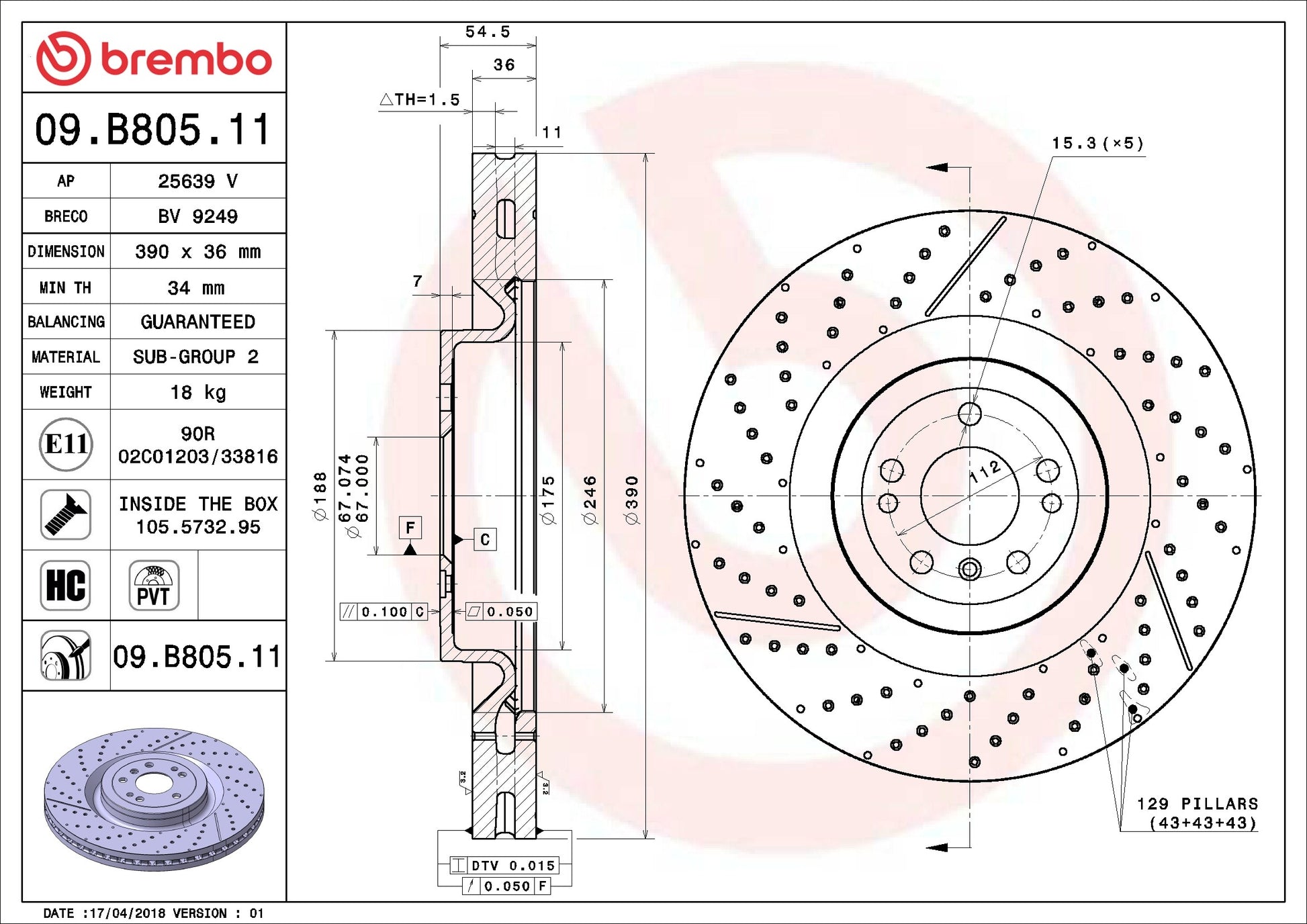 Bremboâ¬"s UV Coated rotors are developed as direct replacement that meets or exceeds OEM specifications. Environmentally friendly, the solvent free UV coating offers superior protection of the disc, including braking plate surfaces. High Carbon cast iron, where applicable, minimizes noise and vibration and provides maximum performance and enhanced driving comfort. Included with the UV Coated rotors is a fixing screw kit with all the necessary hardware for simple and worry free installation. New intelligent marking location show part number & the minimum thickness. In order to optimize and restore braking performance rotors and pads should be replaced together. Pair your UV Coated rotor with Bremboâ¬"s NAO/Ceramic or Low Met brake pad formulations. Brembo, the most trusted brand in braking.