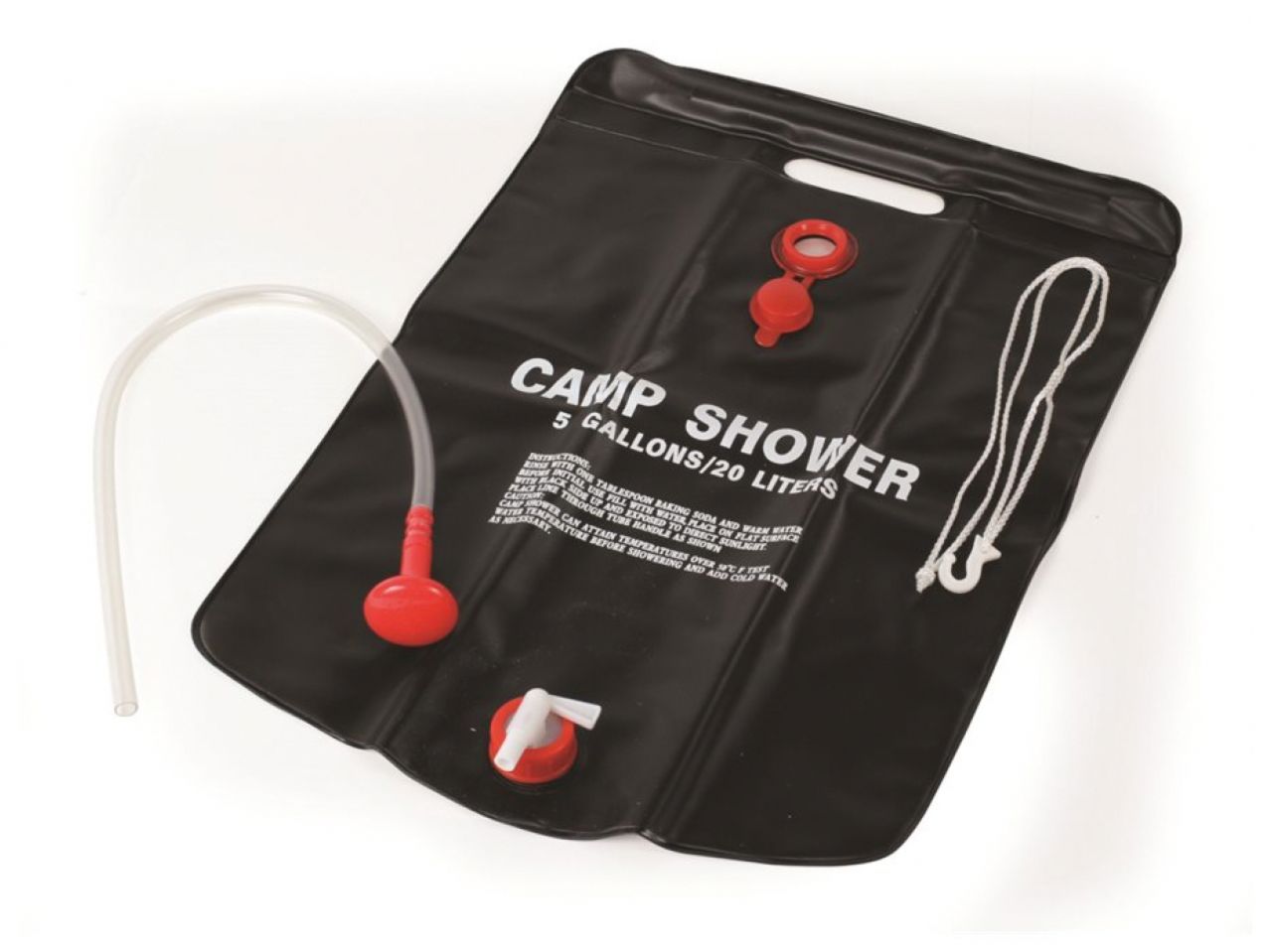 The Camco Solar Camp Shower helps you keep clean, even when you're miles from the nearest shower. Simply fill the Solar Camp Shower up with clean water and let the black bag warm in the sun. Hang the bag from the nearest tree and let gravity do the work. Simply swivel the on/off valve to control the water flow.