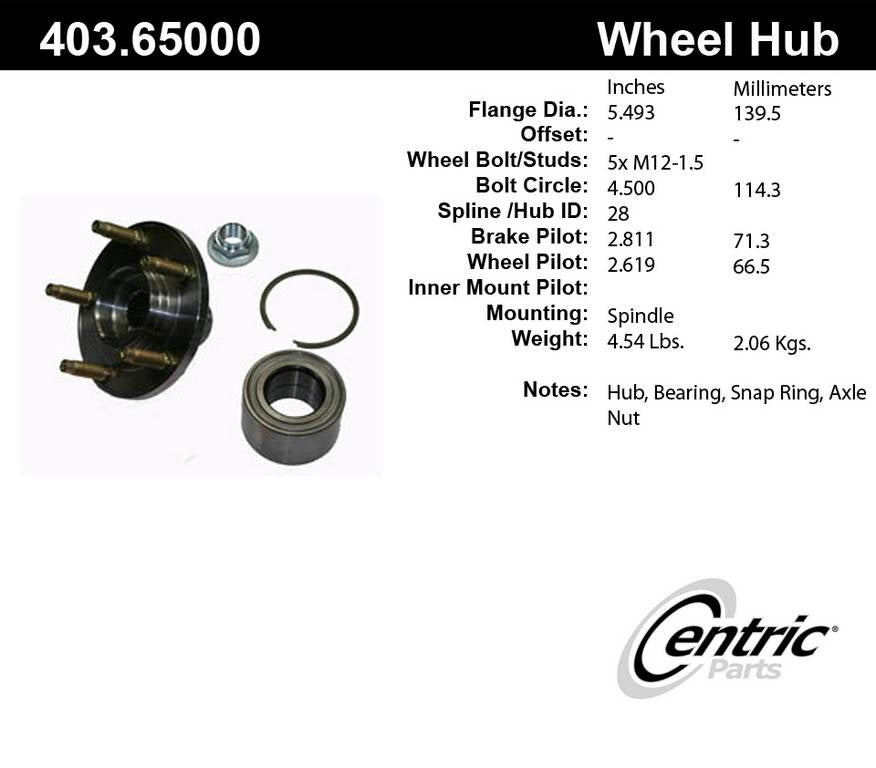 Axle Bearing and Hub Assembly Repair Kit. (403.65000) by Centric Parts