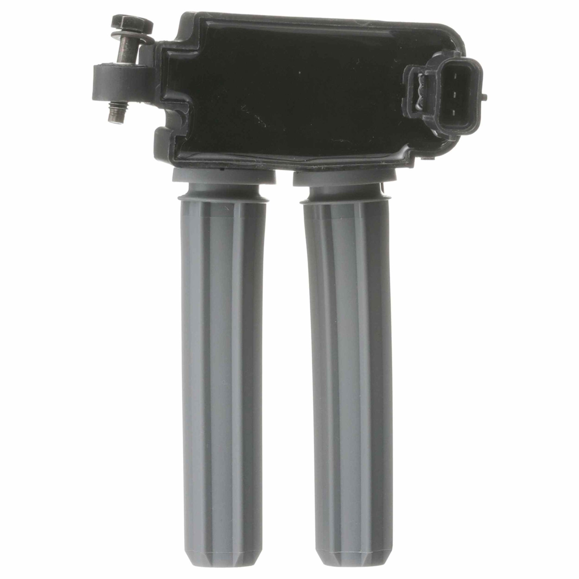 An induction coil, used with a distributor for timing, to transform a vehicles battery voltage to a much higher voltage needed to create proper spark for all spark plugs of an engine. (GN10352) by Delphi