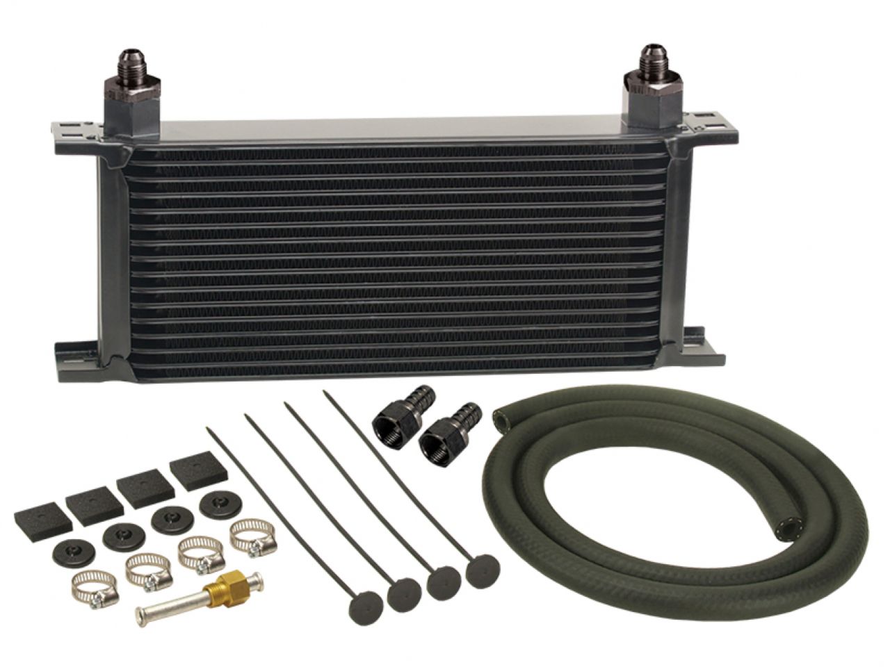With our top of the line 16 Row Stack Plate cooler, -6AN aluminum fittings and hose barb adapters, this highly efficient kit extends transmission life by preventing heat-related transmission failures while also improving shifting performance. This kit comes with a complete transmission cooler hardware kit to easily install onto vehicles with 5/16" transmission cooler lines.