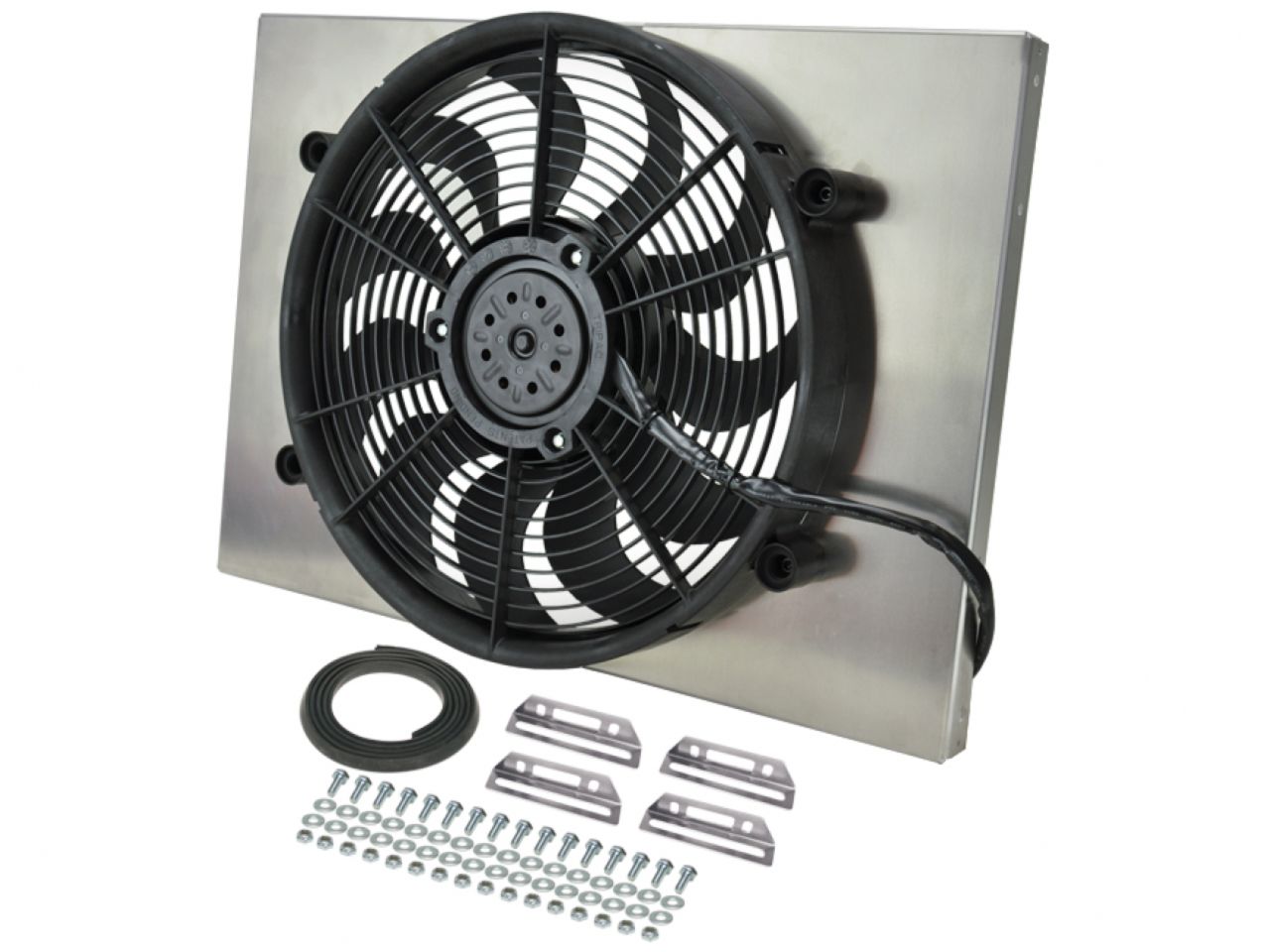 This High Output Single RAD Fan is part of the HO Aluminum Shrouded Fans Series designed with popular applications in mind. This assembly measures 24" wide by 17" top to bottom and only 3" thick overall to offer a precision fit. The raw aluminum shroud gives the user the freedom to polish, anodize, paint, or simply leave it natural to create a truly custom look for an affordable price. The 17" high output two speed fan is one of the best in our line-up offering 2400 CFM when on high to create the most airflow possible in a compact size.