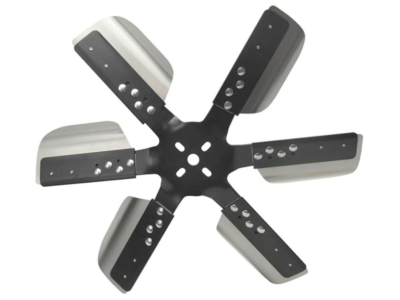 This 18" heavy duty reverse rotation fan features thick black steel hubs and 6 stainless reinforced blades with a large surface area that improve performance and fuel economy and is rated up to 10,000 rpm. The large surface area of the blades pull more air at lower speeds than other flex fans.