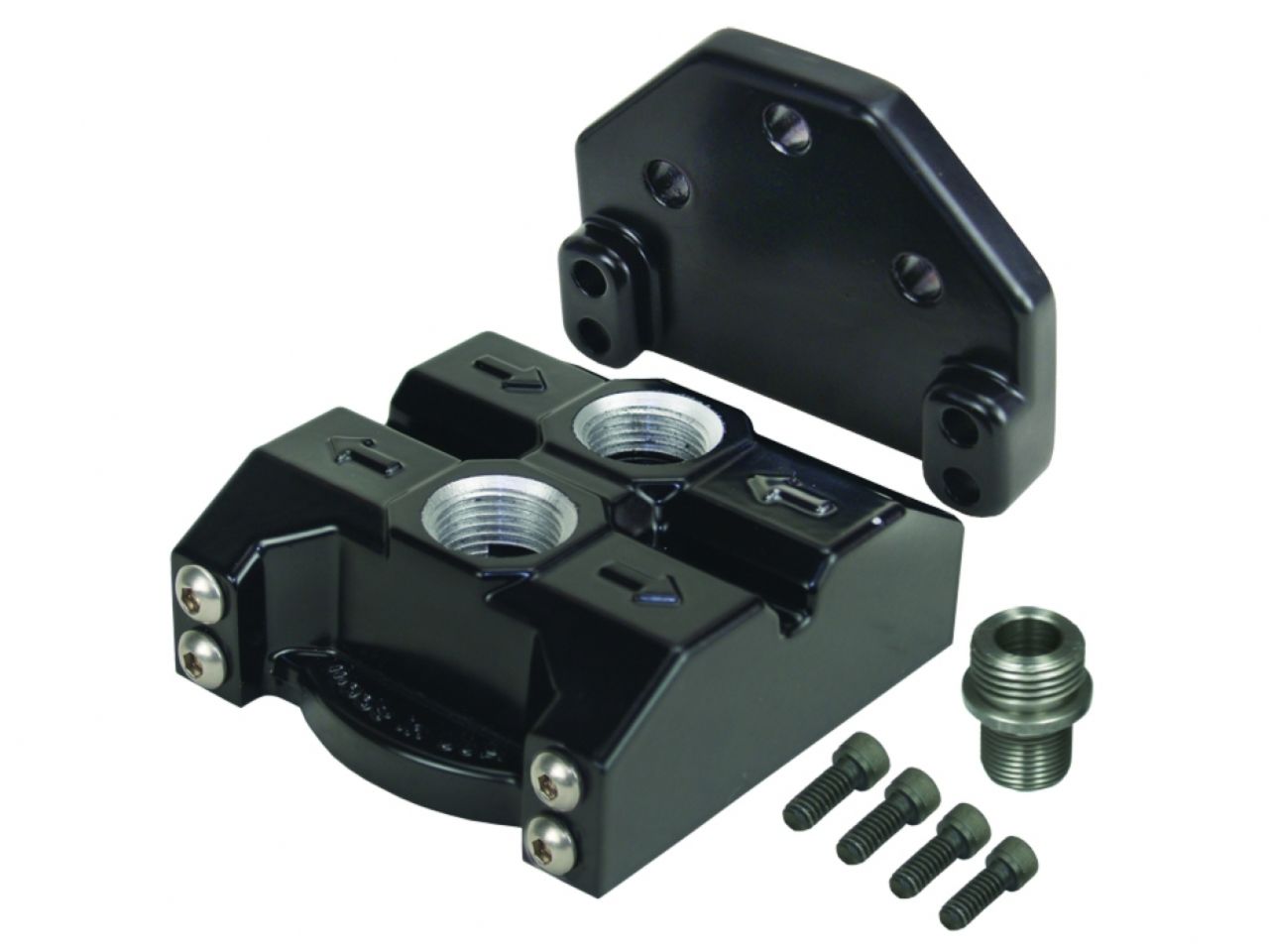 This high quality die cast aluminum filter mount features a billet look without the expensive billet price tag. The -10AN (7/8"-14) O-ring inlet & outlet ports up design allows for simple relocating of an oil filter. With the 3 hole bracket included this unique mounting system allows mount to be rotated 180°, therefore switching the port locations. Also features a durable black powder coat finish. Filter mount uses Fram PH13 oil filter or equivalent.