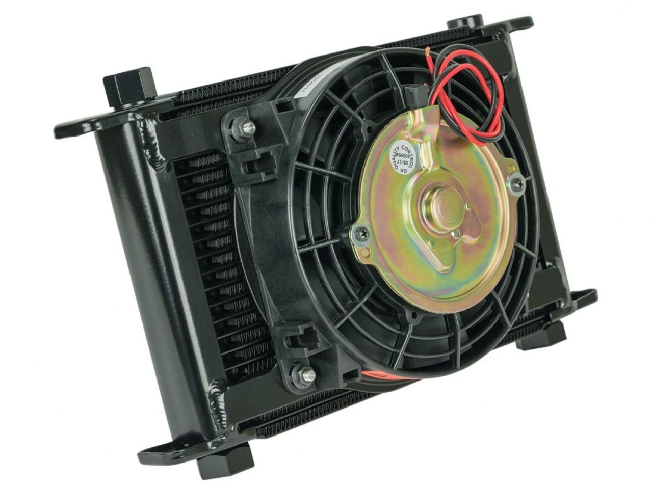 This Flex-A-Lite stacked-plate, 21-row engine-oil cooler is designed for remote mounting and comes with a 6.5-inch electric fan mounted. It measures 11 x 7 1/2 x 4 1/4 inches and includes -8, -10 and -12 interchangeable AN fittings with O-rings.