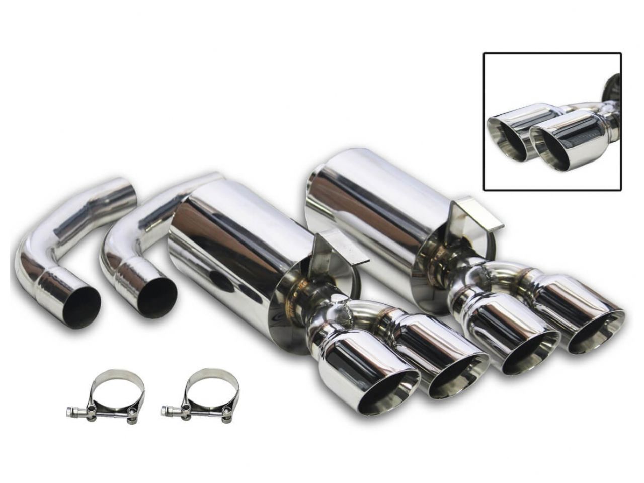 4” polished 304 stainless steel quad tips adding maximum styling to your ride.