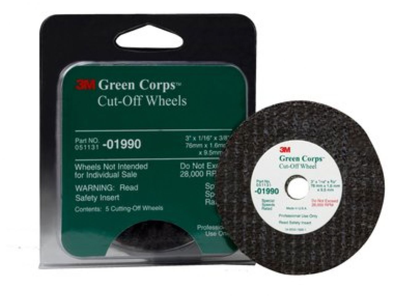 Our 3M™ Green Corps™ Cut-off Wheel is a durable, fast-cutting wheel featuring high cut rates and a long life. Suitable for cutting nearly any material, including fiberglass, stainless steel, and mild steel. Ceramic material lasts up to eight times longer than conventional aluminum oxide cutting wheels. For use with utility type cut-off tools. DO NOT USE TOOLS WITHOUT GUARDS.