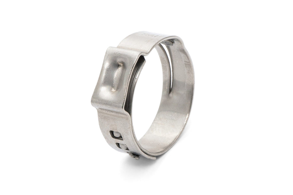 HPS Ear Clamps are specialized to secure hoses onto fittings in various applications, ranging from automotive to industrial settings. Its robust construction and secure fastening mechanism provides reliable performance in demanding environments. These clamps feature a narrow 304 stainless steel band with ears that are designed to be crimped using a special crimping tool. This easy installation ensures a consistent and repeatable installation especially in manufacturing settings. HPS Ear Clamps features a tongue and groove design to provide secure and uniform clamping force around hoses, ensuring a reliable seal. Ear clamps are a versatile and reliable option for securing hoses in various industrial and automotive applications, providing efficient sealing and peace of mind against leaks and system failures.