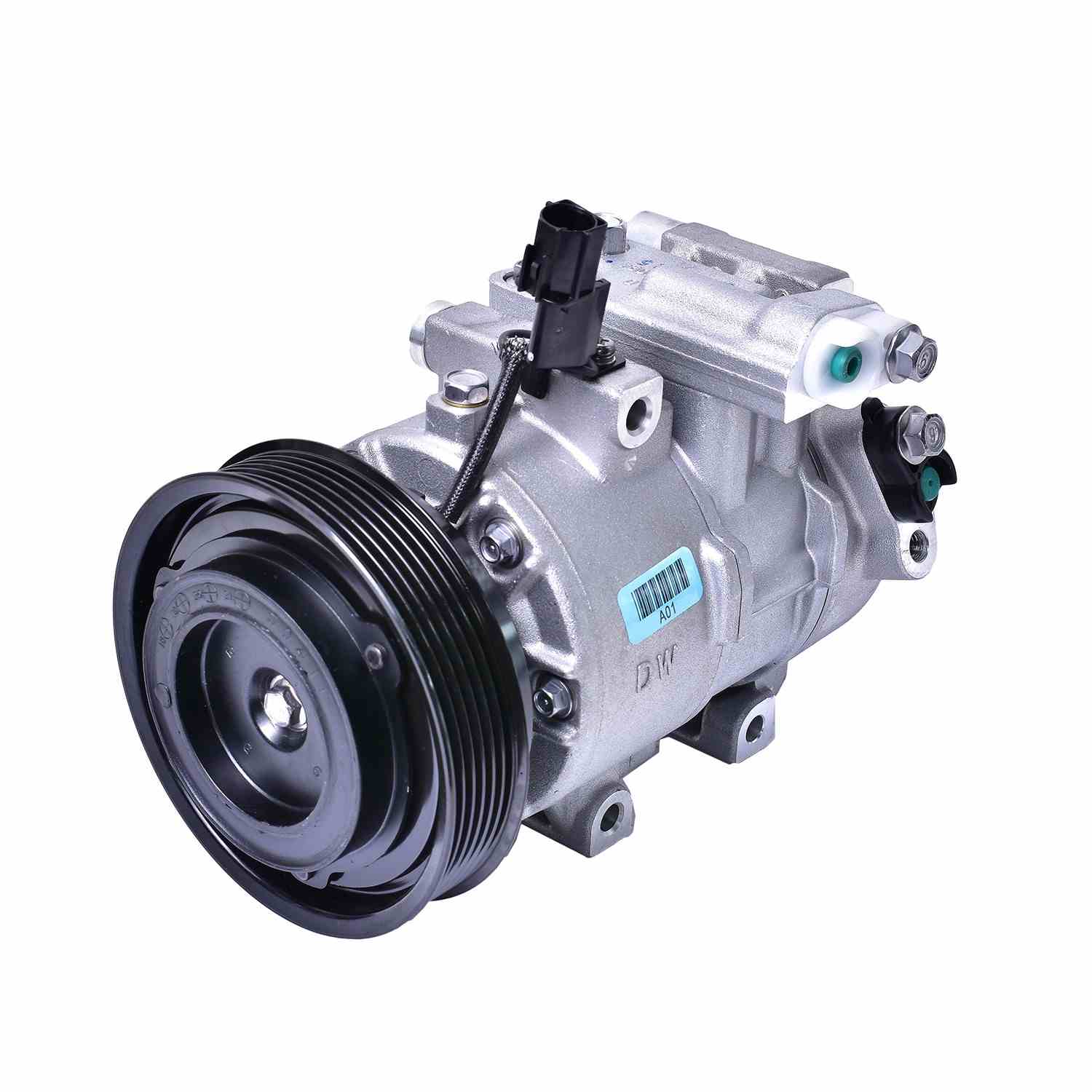 An A/C Compressor that may or may not include an A/C Compressor Clutch. (10A1045) by Mando