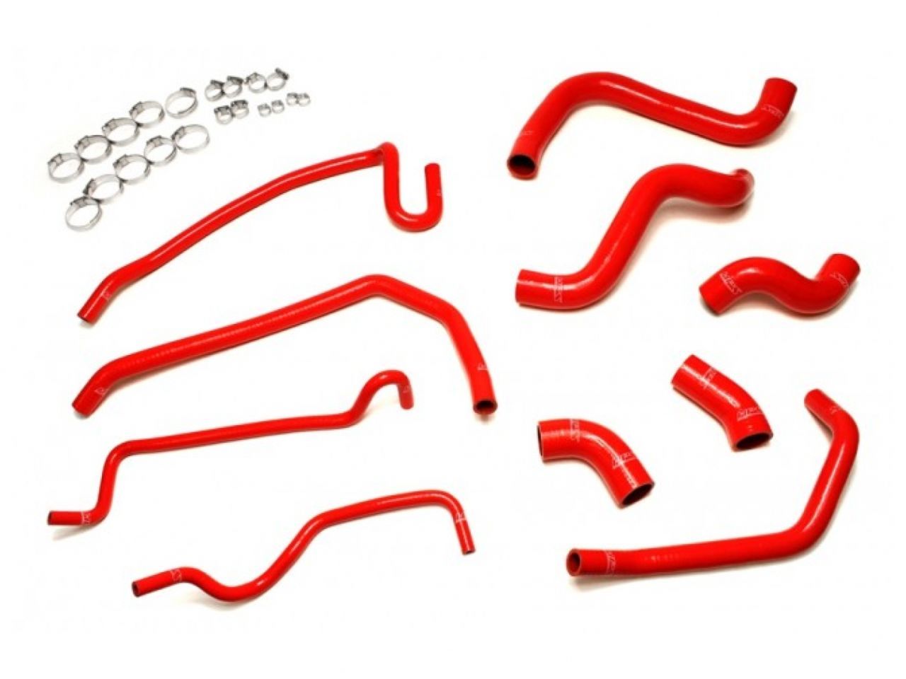 Ford 11-14 Mustang GT 5.0L V8 & Boss 302 HPS High Temp 3-ply Reinforced Silicone Radiator and Heater Hose Kit Red is designed to replace stock OEM rubber hoses which can eventually weaken over time, leading to premature failure. With premium quality silicone and race inspired design, this HPS silicon Radiator and Heater Hose Kit can withstand the harsh high temperature and high pressure operating conditions of the engine yet still maintaining peak efficiency during competition or daily driving. HPS silicone Radiator and Heater Hose Kit has all the correct bends and curves for a perfect fit replacement for your OEM rubber coolant hoses, compare to the universal hoses you can get from the local auto store, HPS hose kit is much easier to work with. Max Temperature Rating: 350 deg. F (177 deg. C). 100% Stainless Steel Clamps are included for easy installation.