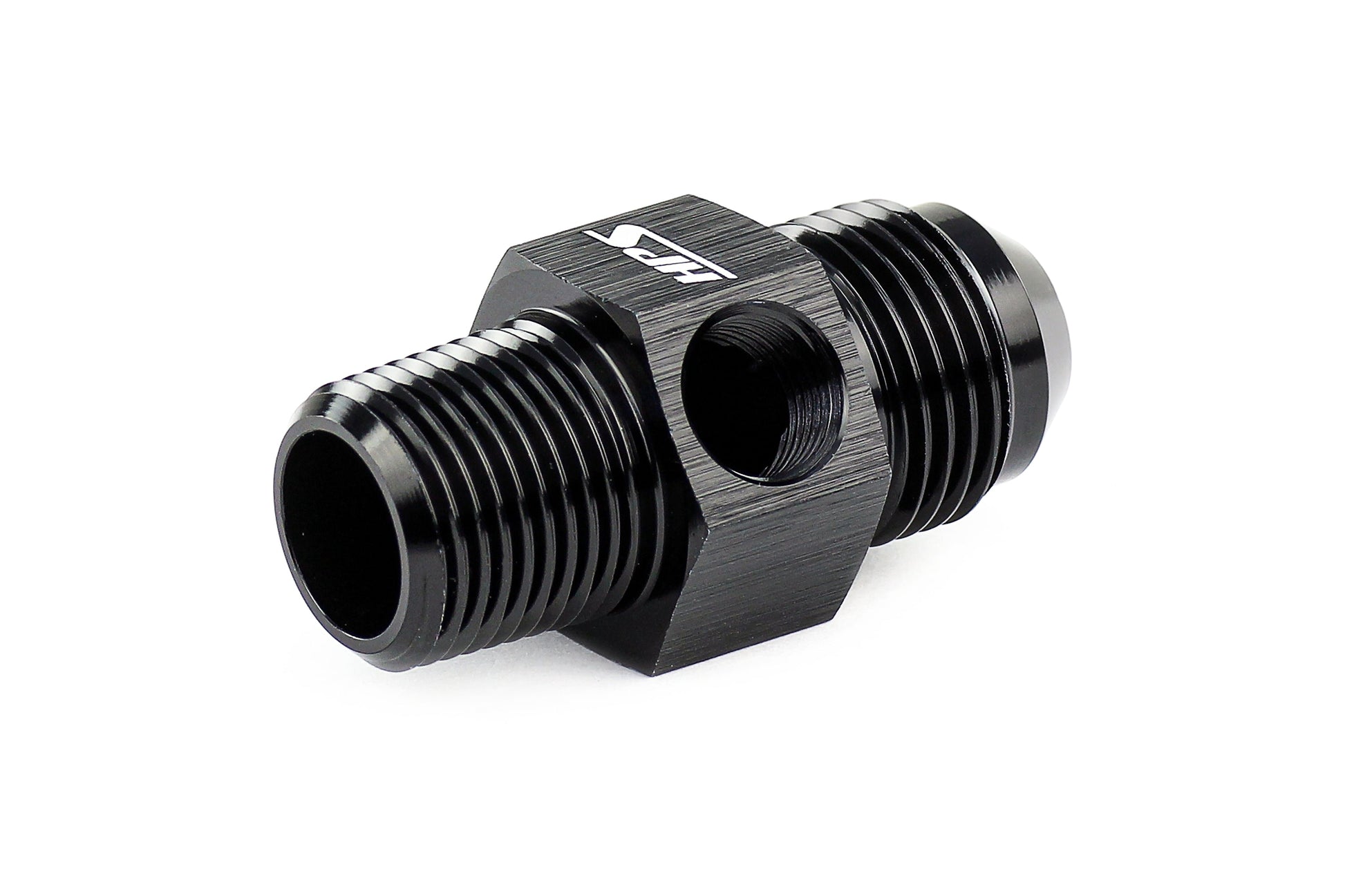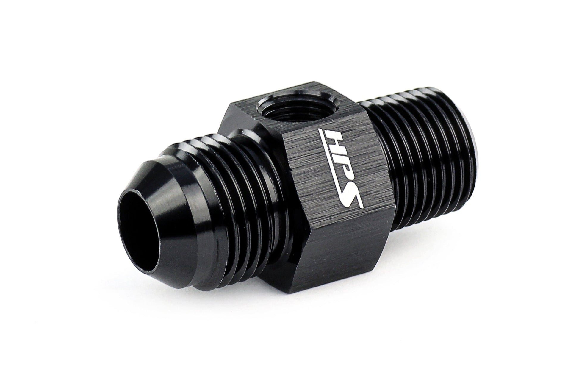 HPS AN Adapter Fittings are designed to be used in a variety of applications such as cooling, oil, and fuel. This adapter converts your NPT port to a 37 degree AN Male with a 1/8" NPT female branch in between to conveniently add sensors, switches, and other components to your system. These fittings are easy to assemble without the use of any special tools. HPS AN fittings are Type II anodized in black for a clean appearance that is corrosion and scuff resistant. Suitable for transporting air, water, coolant, oil, and most fuels.