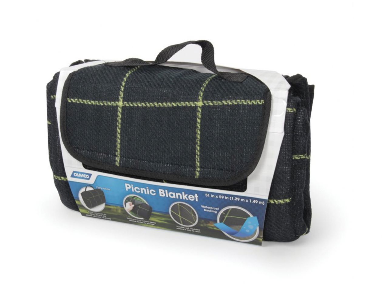 Camco Picnic Blanket - Black / Yellow 51" x 59" Bilingual