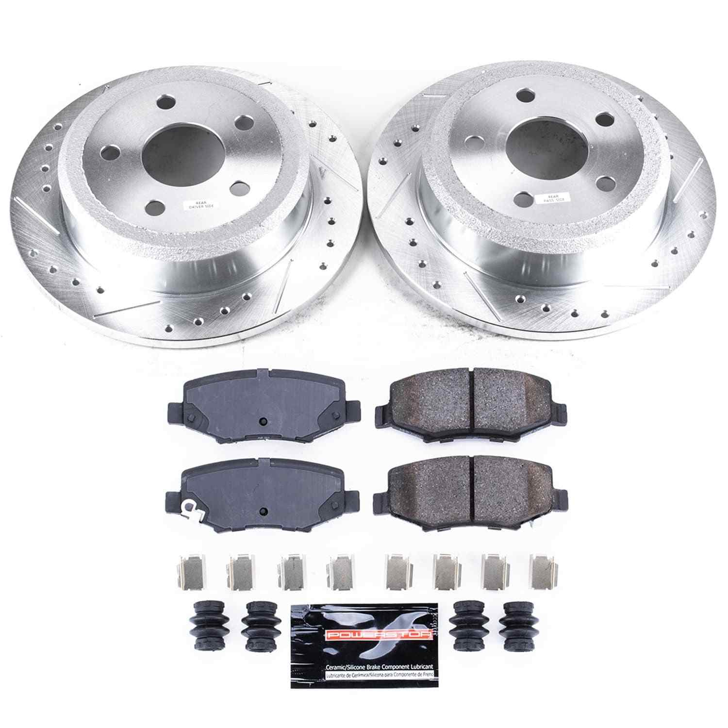 Power Stop - Rear Z23 Daily Driver Carbon-Fiber Ceramic Brake Pad and Drilled & Slotted Rotor Kit