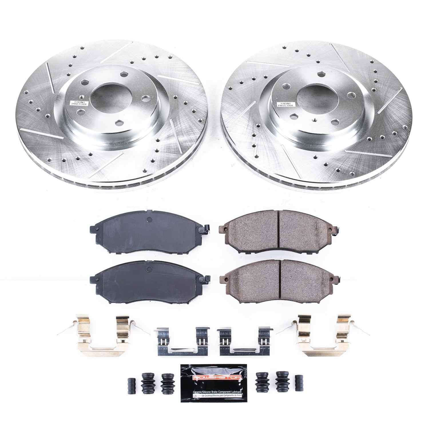 PowerStop is on a mission to deliver an easy way for any driver to upgrade their brakes - no matter where or how they use their vehicle. Forget standard, off-the-shelf parts. Our Z23 Evolution Sport Brake Upgrade Kit comes with everything you need, from pads, rotors and premium stainless-steel hardware for an easy, bolt-on upgrade for your daily-driver. Along with increased braking power, the Carbon-Fiber Ceramic brake pads feature a low-dust formula to keep those wheels looking great while you say goodbye to nasty brake dust. These pads combine with Drilled & Slotted rotors to ensure a cool, smooth ride that protects against rust and corrosion. Give your daily-driver the easy and affordable performance upgrade it deserves with the Z23 Evolution Sport Brake Upgrade Kit.