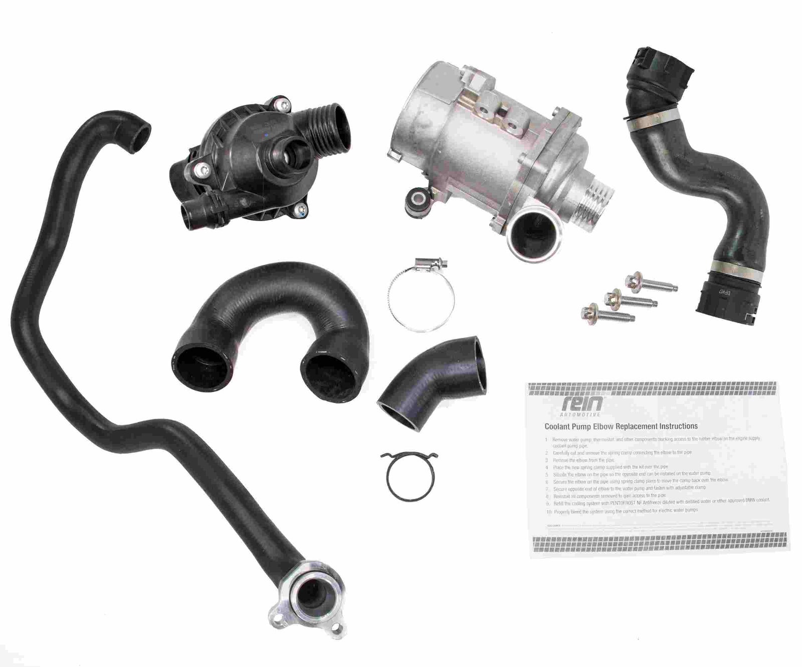 Rein OE Quality electric water pump replacement kits offer a valuable solution to failure prone cooling related components on the N51/2/4 BWM engine platforms. At the heart of these kits are OE electric water pumps and OE-quality thermostat assemblies which are complemented by Rein's problem solver hoses and necessary mounting hardware. These kits ensure that the time consuming water pump repair is performed in a single effort, eliminating the possibility of a repeat repair. Replacing all related cooling system components at a suggested interval of 80,000 miles on this complicated engine platform and performing a proper coolant flush at the same time will ensure longevity of the system. The OE or Pentosin NF-G11 coolant is recommended for this repair.
