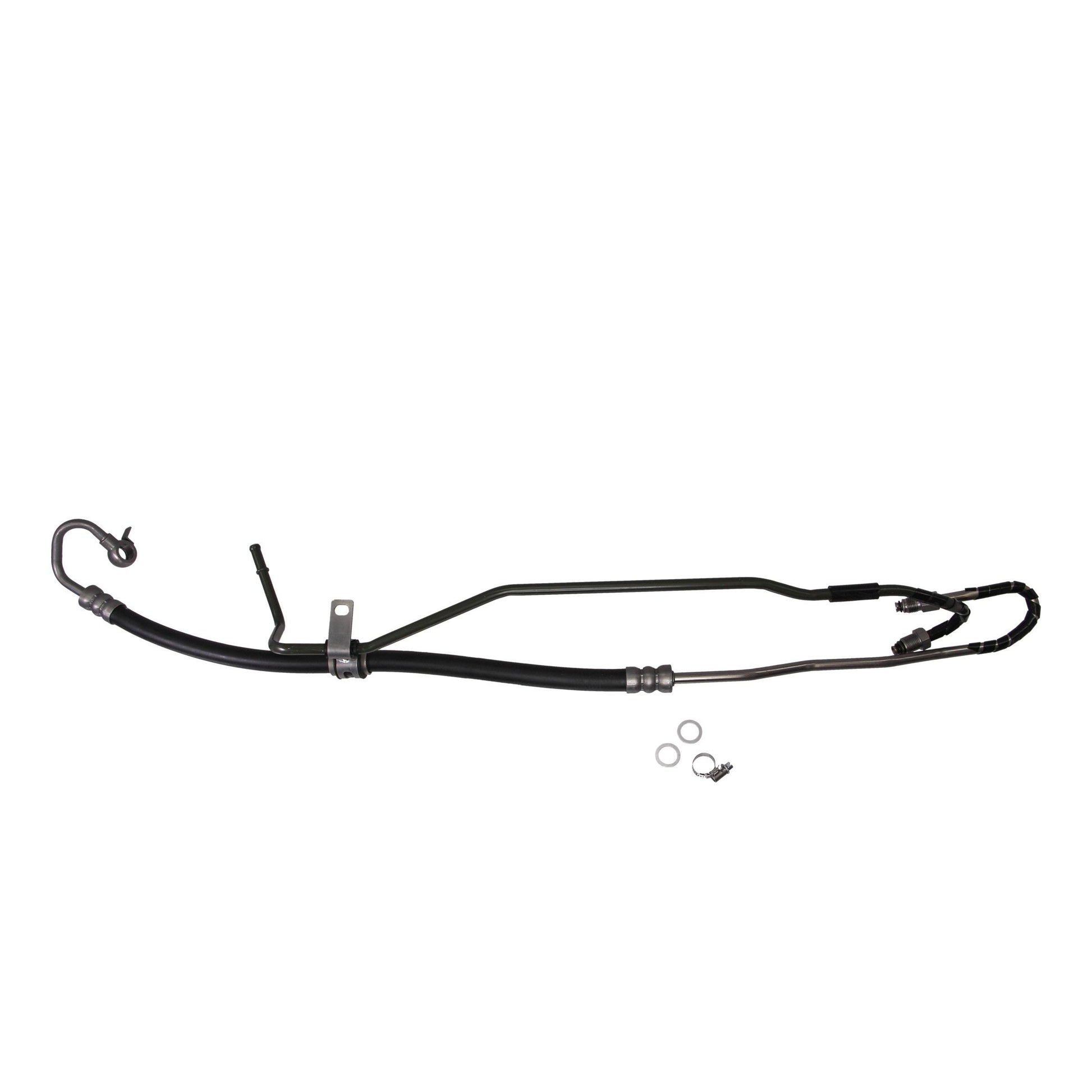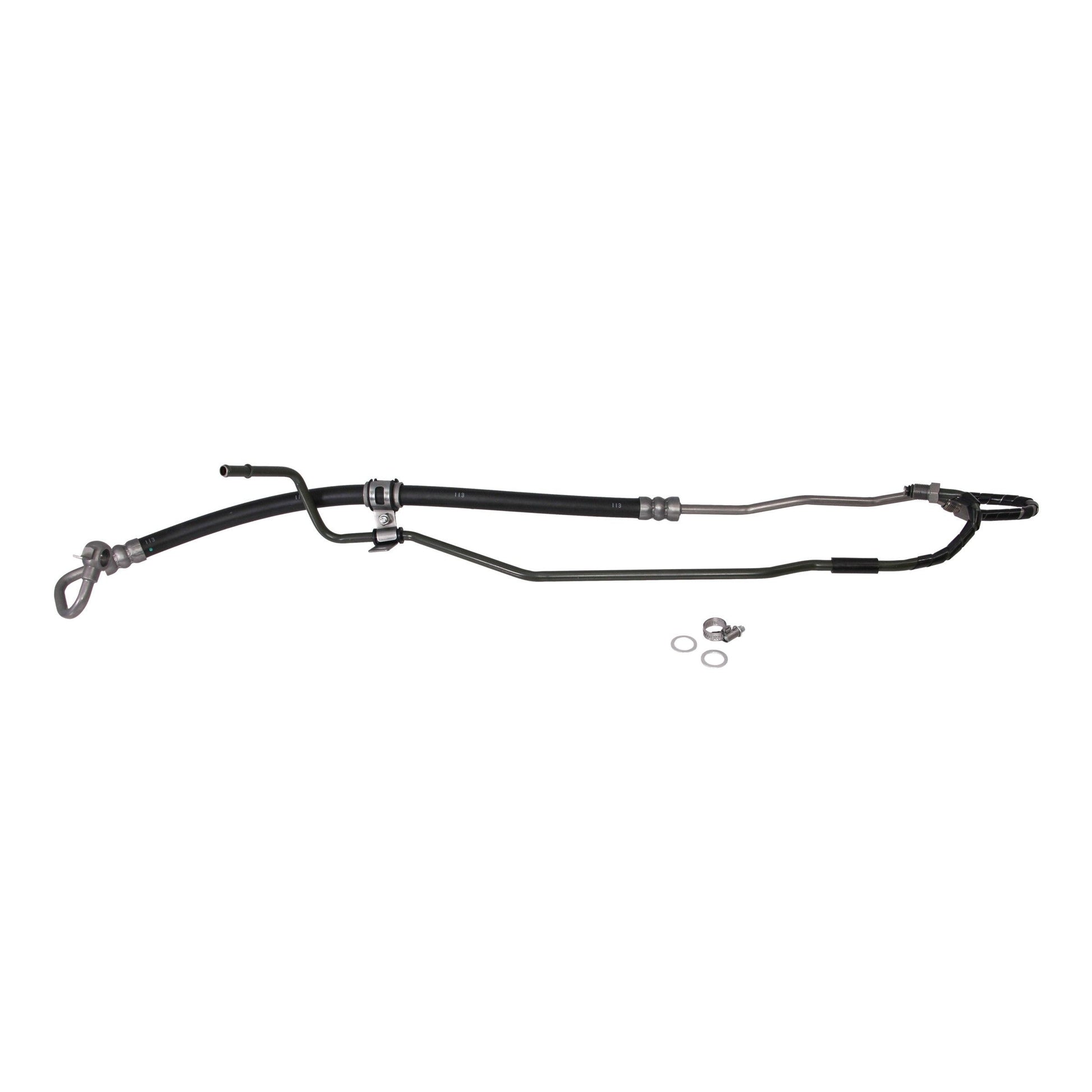 Rein OE Quality power steering high pressure feed and return hose assemblies are designed to save valuable labor time. During the manufacturing process, each high pressure feed assembly undergoes rigorous testing of its tensile strength, burst pressure, low temperature flexibility, impulse, and corrosion resistance to exceed industry standards. Rein high pressure hose assemblies are built with SAE J188 compliant rubber compound hose with an internal noise absorber, not included by most competitors, along with protective jacket(s) and or heat sleeve(s). The SAE J526 compliant tubing sections of the assemblies, along with their end fittings, are made of heavy duty carbon steel which are either resin, zinc or zinc plus powder coated for rust resistance. Tying the individual sections together are coated hose crimp ends, pre assembled brackets which eliminate the need for special tools, sealing hardware, and a pressure switch port all as specified by the OE manufacturer.