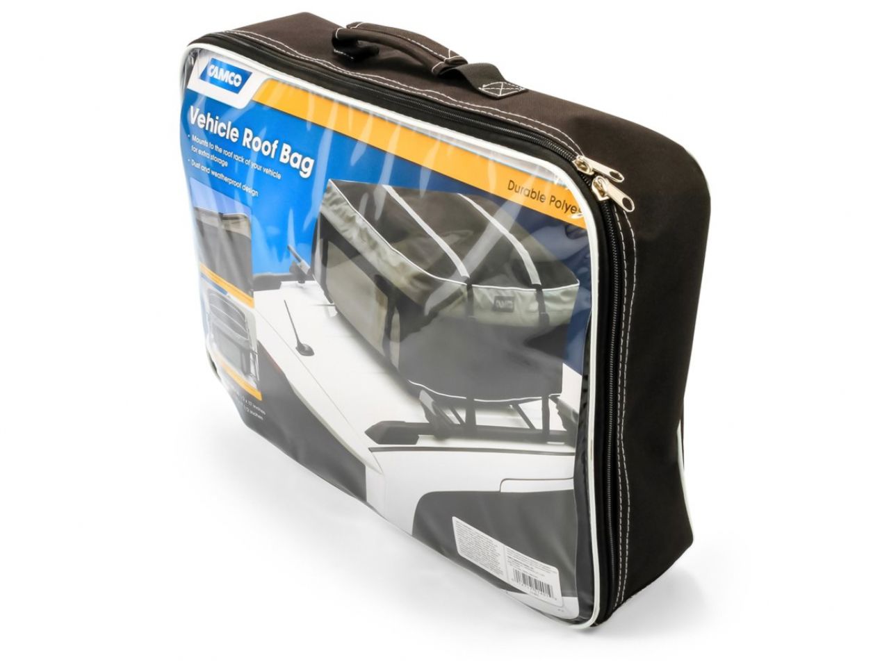 The Camco Rooftop Car Carrier is a simple, space-efficient way to increase the storage capacity of your vehicle. It easily mounts to the top roof rack of your car and securely fastens with straps and buckles. The Rooftop Bag is made of durable, double-stitched polyester that is dust and weatherproof. It is easy to roll-up or fold for storage when not in use, but easily expands to accommodate your storage needs. The black Rooftop Bag measures 39" x 30.5" x 17"and drastically increases the storage capability of your vehicle.