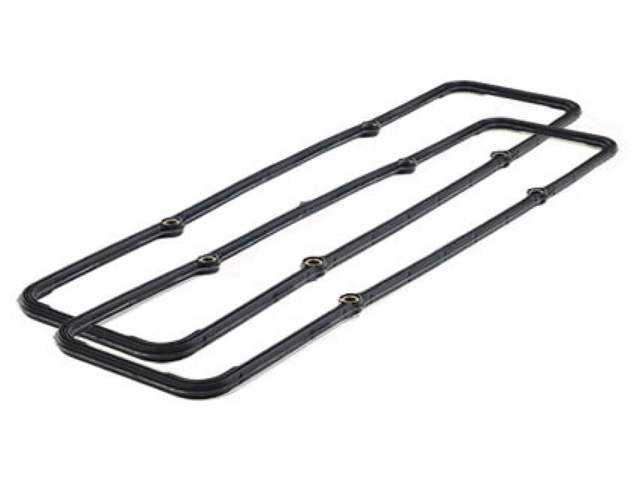 Accu Seal Pro Molded Rubber Valve Cover Gaskets for SBC with Standard Perimeter 4 Bolt Pattern. Compare to Fel-Pro 1628, Mr. Gasket 5853G. Material: Precision Re-usable Contour Molded Silicone Rubber with a rigid Steel Core and Crush Limiters; Thickness: .187?; Package Contents: 1 Pair. Made in USA.