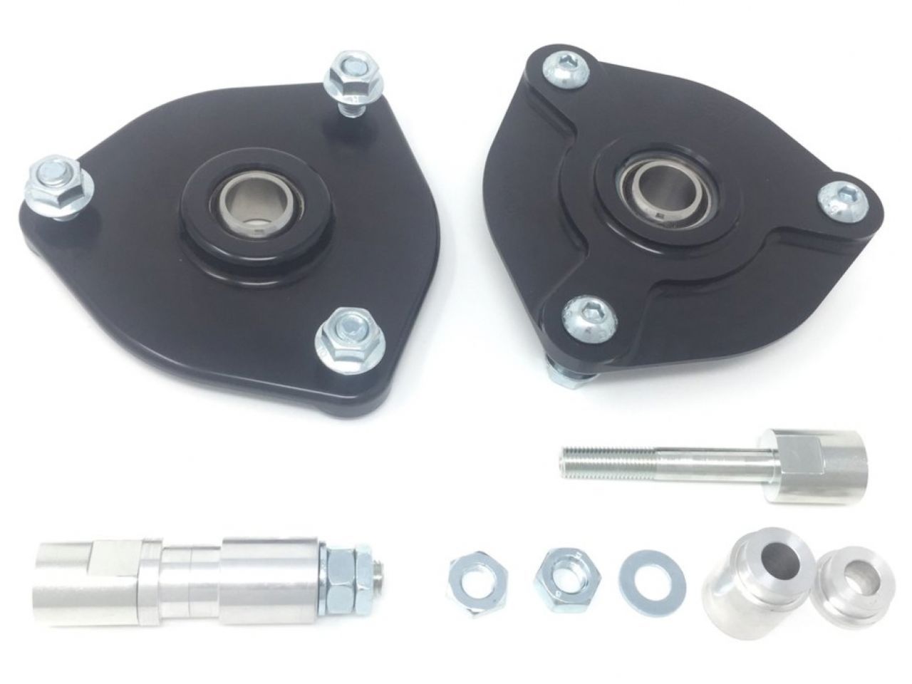 Made in the USA from 6061 billet aluminum. All Diftech upper mounts use high strength FK wide-series bearings with Teflon liners for maintenance free, quiet operation. Customers can also email us for custom install kits for specific racing applications.
