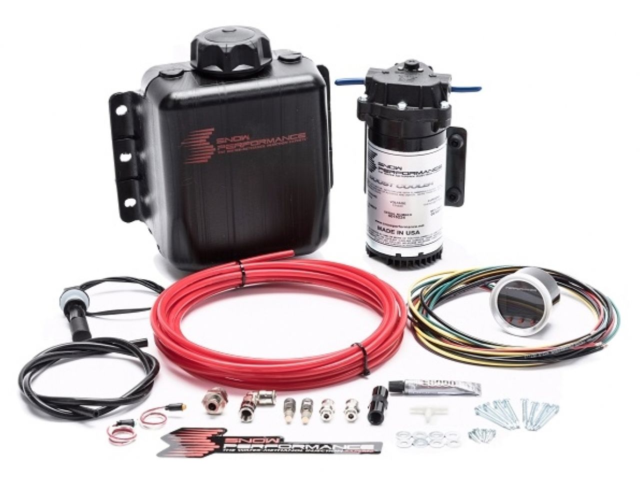This kit utilizes the only OEM approved water methanol injection pump on the market with proprietary heat flange, twin seals, and custom motor winding to run cooler and longer than the competition. The Extreme EnvironmentT 300 PSI UHO pump is designed to be in the elements with O-Ring connections that are then sealed and potted at our Colorado facility to ensure no moisture can enter the pump internals. Compare this to pumps that use a pump "sleeve". These sleeves will keep moisture around the pump unit leading to corrosion as well as trap heat greatly decrease pump life. The Stage 2 comes standard with 100% methanol resistant components using stainless steel, nickel plating, EPDM, and hard anodizing to ensure years of continued use. Tie that in with new Snow Performance ACU-SEALT compression fittings for guaranteed leak free operation even when using 100% methanol. Whether running a supercharger, turbo, or high compression motor the Stage 2 Boost CoolerT will make the induction charge colder, denser, and increase 91 octane fuel to 116 octane race gas levels allowing full power all the time!