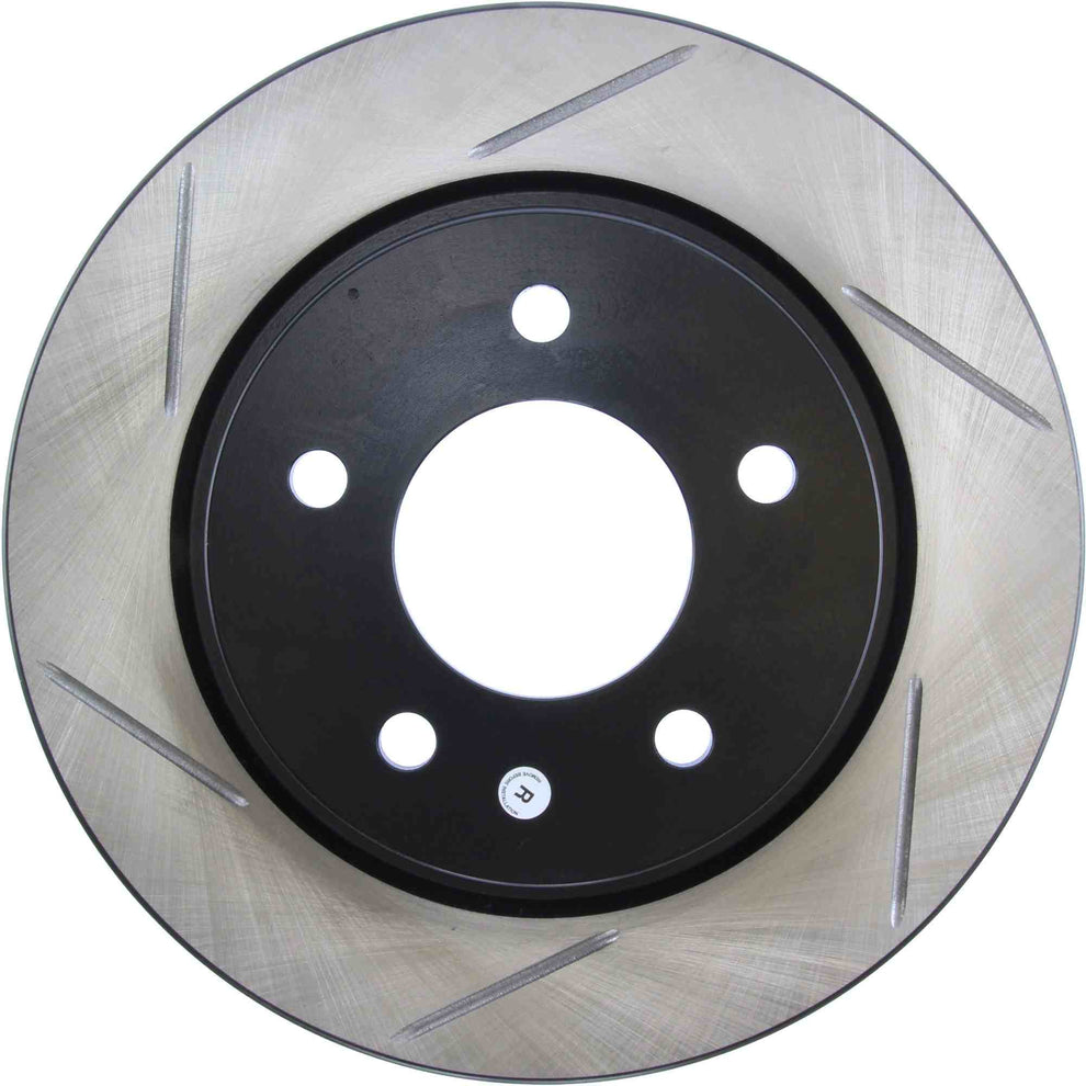 Stoptech Brake Rotors - Slotted 126.45067SR StopTech Slotted Sport Rotors are 1-piece direct replacement brake discs for factory brake systems and stock calipers that look great behind your wheels and offer significantly improved braking performance. The unique slotting aids with heat and brake dust dispersal, prevents glazing of the pads, adds bite and improves wet and dry braking performance. Built to last, the black e-coating provides protection from corrosion and the high carbon metallurgy (in most applications) offers quieter operation, better crack resistance and increased performance. StopTech Sport Slotted Brake Rotor; Rear Right Premium e-coated rotor with advanced metallurgy that greatly reduces pad squeal. Especially effective with higher friction, European style brake pad compounds. Slotted for increased bite, improved looks and better performance Sport Slotted Rotor