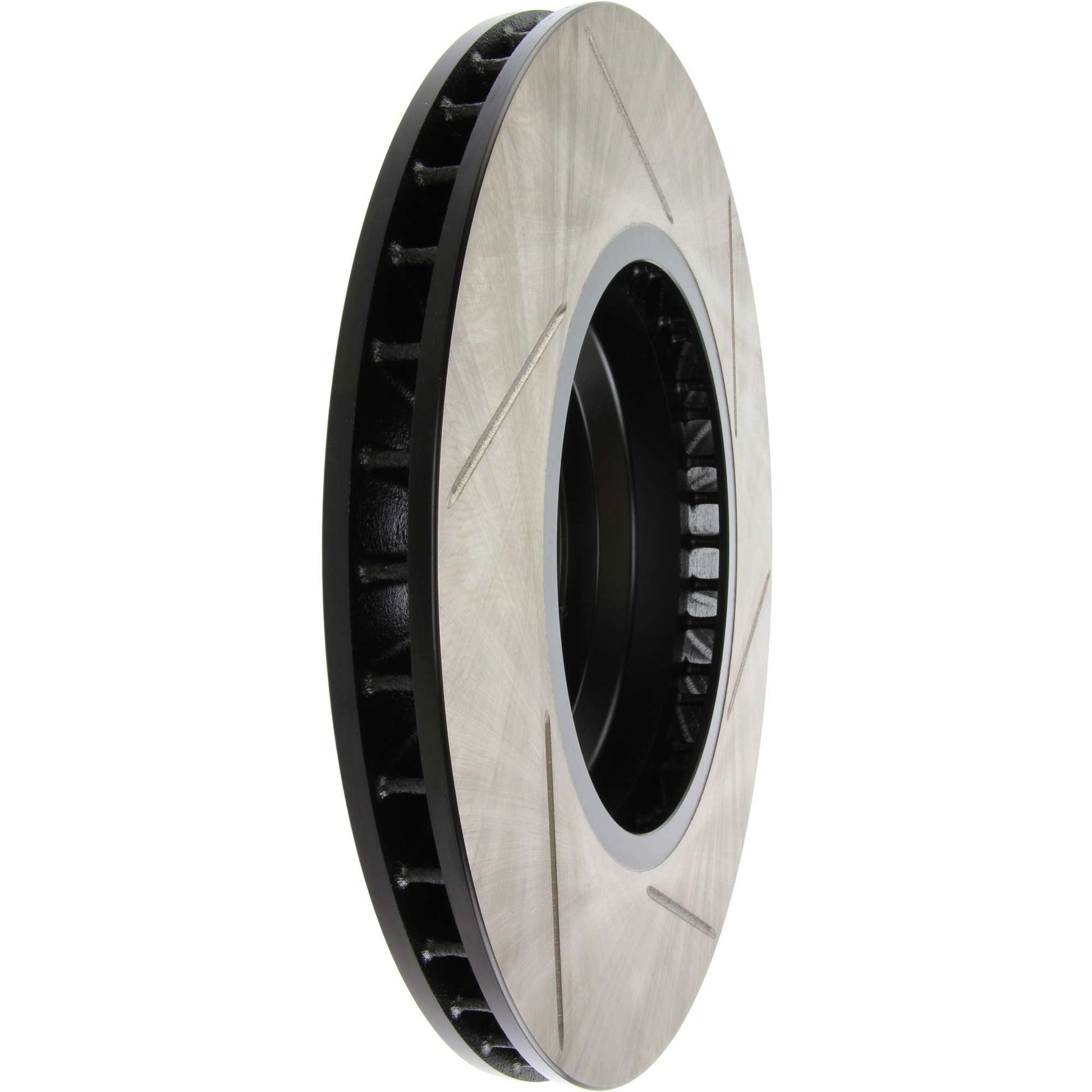 StopTech Slotted Sport Rotors are 1-piece direct replacement brake discs for factory brake systems and stock calipers that look great behind your wheels ⬠and offer significantly improved braking performance. The unique slotting aids with heat and brake dust dispersal; prevents glazing of the pads; adds bite and improves wet and dry braking performance. Built to last; the black e-coating provides protection from corrosion and the high carbon metallurgy (in most applications) offers quieter operation; better crack resistance and increased performance.