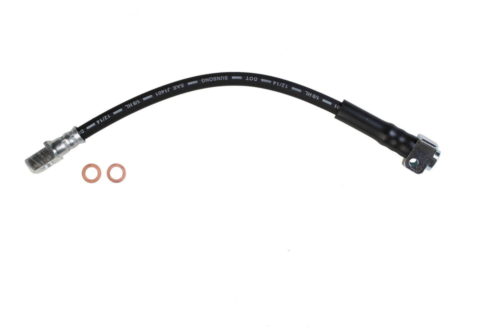 Each brake hose is precision engineered to exact fit and includes brackets, grommets, molded plastic guards, wire clips, and protective sleeves as required to ensure that all wearable parts are restored to original condition. Brake hoses meet or exceed DOT, Federal Vehicle Safety Standards (FMVSS 106) and SAE J1401 standards. All tubing is manufactured from high grade steel and electroplated with a zinc coating delivering superior corrosion and rust resistance against elements such as high humidity, road salt, water, and grime. Every brake hose is subjected to a high pressure quality assurance test before leaving the factory, ensuring trouble free installation and operation of your new hose. Brake hoses with banjo end fittings include new copper washers to ensure proper sealing