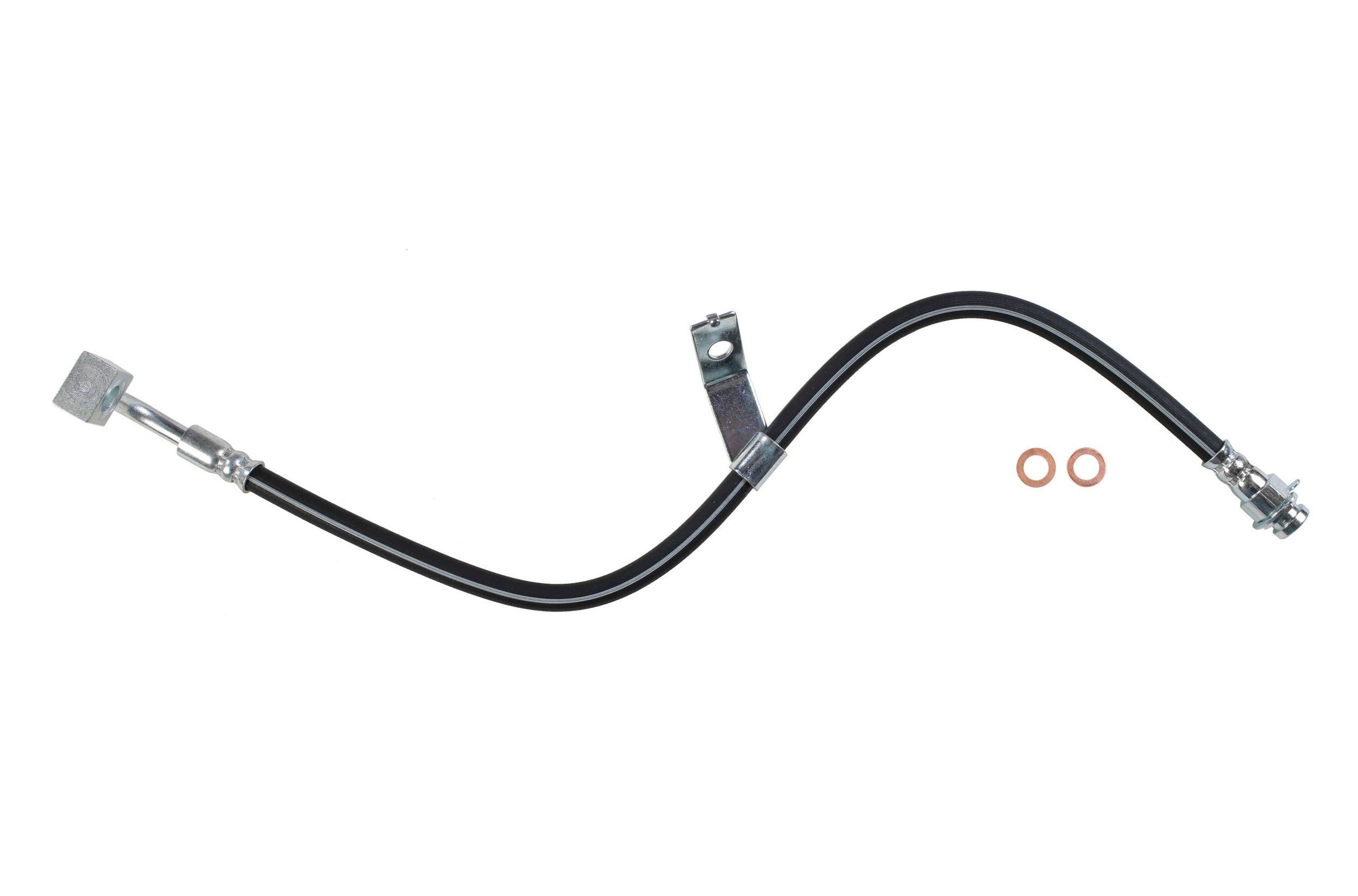 Each brake hose is precision engineered to exact fit and includes brackets, grommets, molded plastic guards, wire clips, and protective sleeves as required to ensure that all wearable parts are restored to original condition. Brake hoses meet or exceed DOT, Federal Vehicle Safety Standards (FMVSS 106) and SAE J1401 standards. All tubing is manufactured from high grade steel and electroplated with a zinc coating delivering superior corrosion and rust resistance against elements such as high humidity, road salt, water, and grime. Every brake hose is subjected to a high pressure quality assurance test before leaving the factory, ensuring trouble free installation and operation of your new hose. Brake hoses with banjo end fittings include new copper washers to ensure proper sealing