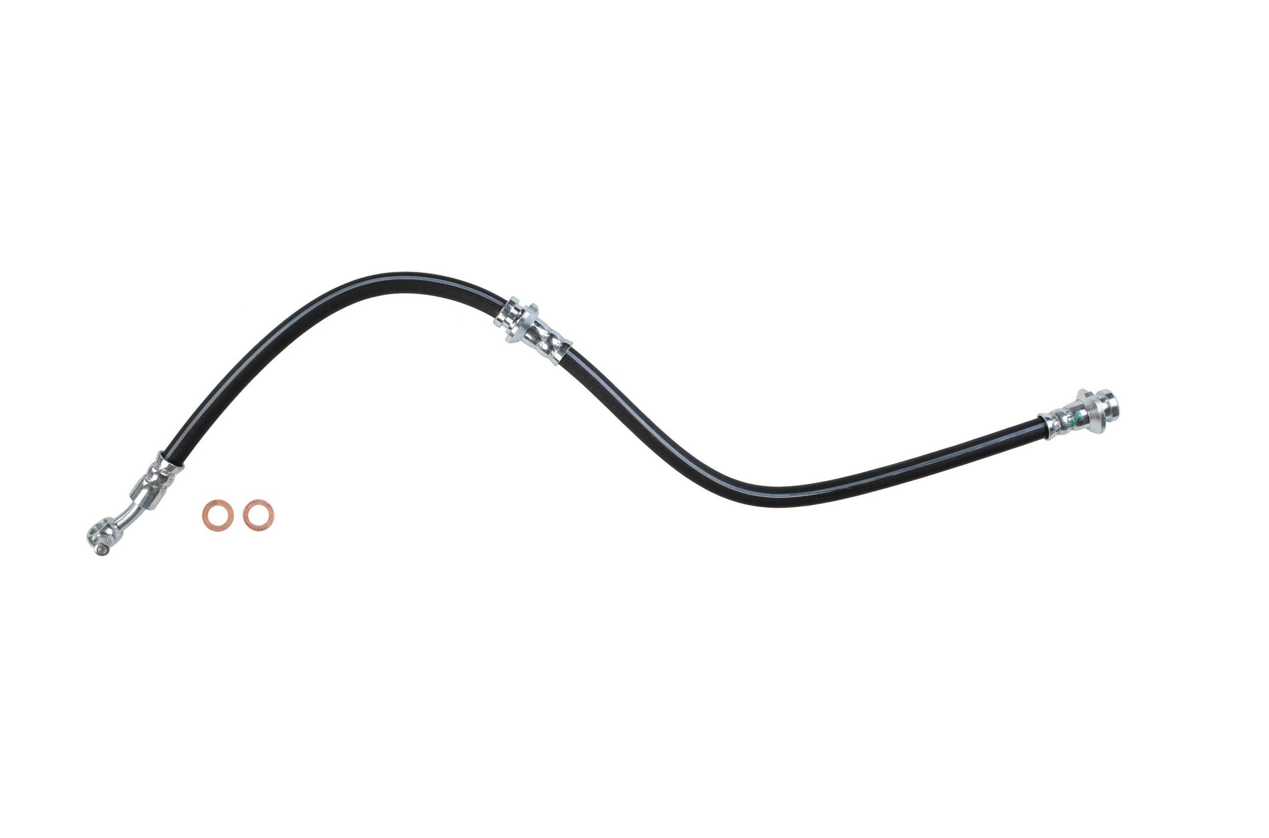 Each brake hose is precision engineered to exact fit and includes brackets, grommets, molded plastic guards, wire clips, and protective sleeves as required to ensure that all wearable parts are restored to original condition. Brake hoses meet or exceed DOT, Federal Vehicle Safety Standards (FMVSS 106) and SAE J1401 standards. All tubing is manufactured from high grade steel and electroplated with a zinc coating delivering superior corrosion and rust resistance against elements such as high humidity, road salt, water, and grime. Every brake hose is subjected to a high pressure quality assurance test before leaving the factory, ensuring trouble free installation and operation of your new hose. Brake hoses with banjo end fittings include new copper washers to ensure proper sealing