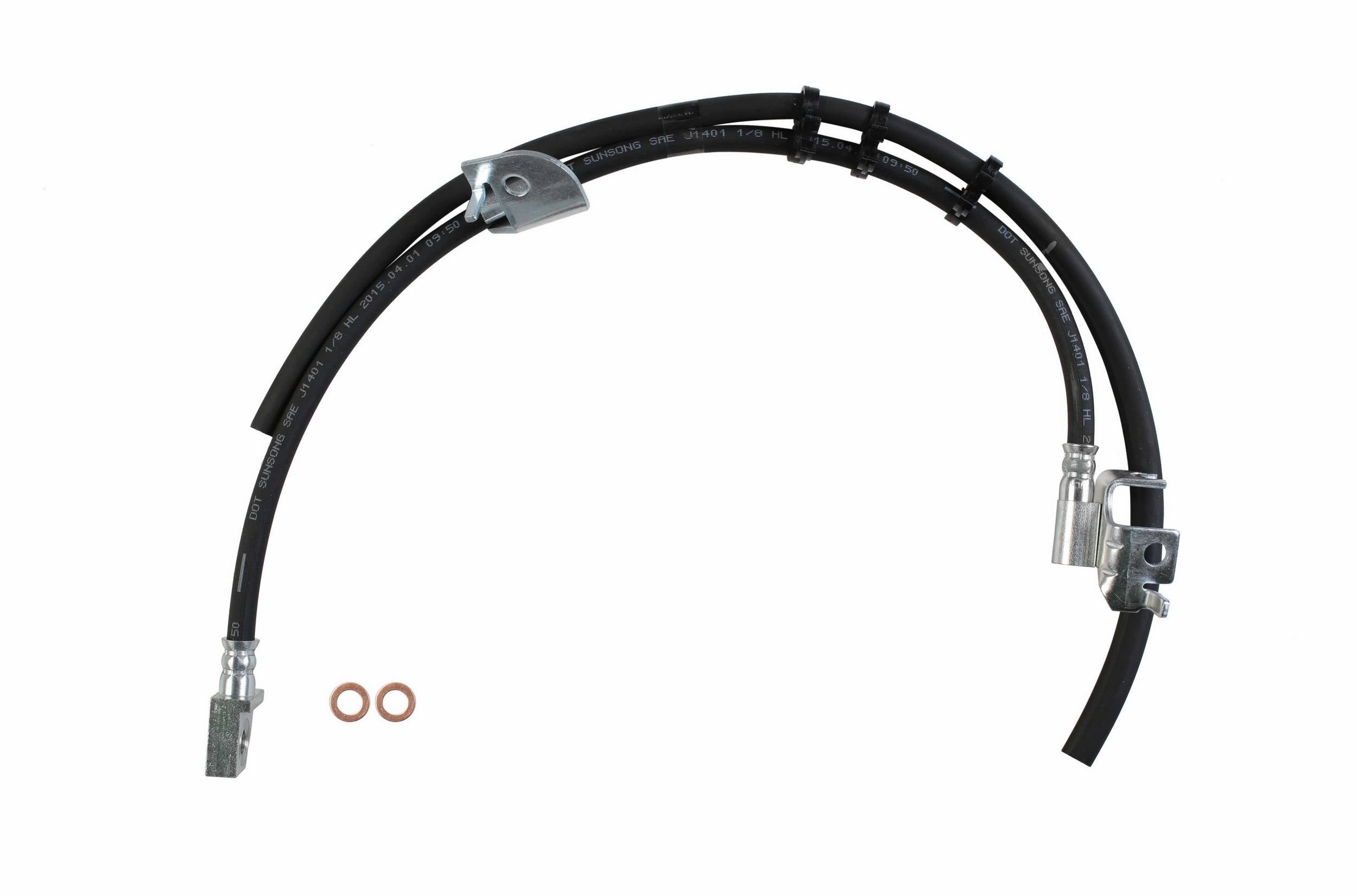 Each brake hose is precision engineered to exact fit and includes brackets, grommets, molded plastic guards, wire clips, and protective sleeves as required to ensure that all wearable parts are restored to original condition. Brake hoses meet or exceed DOT, Federal Vehicle Safety Standards (FMVSS 106) and SAE J1401 standards. All tubing is manufactured from high grade steel and electroplated with a zinc coating delivering superior corrosion and rust resistance against elements such as high humidity, road salt, water, and grime. Every brake hose is subjected to a high pressure quality assurance test before leaving the factory, ensuring trouble free installation and operation of your new hose. Brake hoses with banjo end fittings include new copper washers to ensure proper sealing