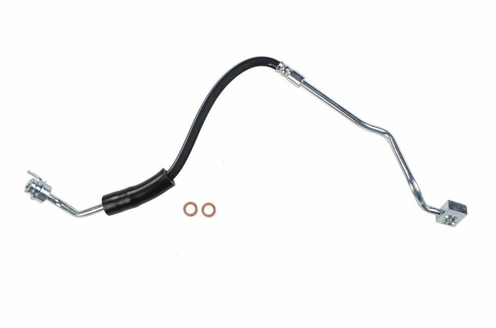 Each brake hose is precision engineered to exact fit and includes brackets, grommets, molded plastic guards, wire clips, and protective sleeves as required to ensure that all wearable parts are restored to original condition. Brake hoses meet or exceed DOT, Federal Vehicle Safety Standards (FMVSS 106) and SAE J1401 standards. All tubing is manufactured from high grade steel and electroplated with a zinc coating delivering superior corrosion and rust resistance against elements such as high humidity, road salt, water, and grime. Every brake hose is subjected to a high pressure quality assurance test before leaving the factory, ensuring trouble free installation and operation of your new hose. Brake hoses with banjo end fittings include new copper washers to ensure proper sealing