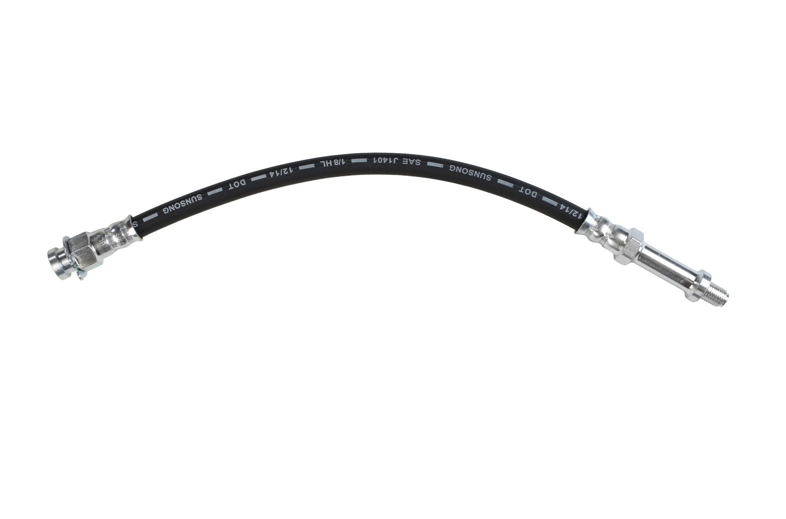 Each brake hose is precision engineered to exact fit and includes brackets, grommets, molded plastic guards, wire clips, and protective sleeves as required to ensure that all wearable parts are restored to original condition. Brake hoses meet or exceed DOT, Federal Vehicle Safety Standards (FMVSS 106) and SAE J1401 standards. All tubing is manufactured from high grade steel and electroplated with a zinc coating delivering superior corrosion and rust resistance against elements such as high humidity, road salt, water, and grime. Every brake hose is subjected to a high pressure quality assurance test before leaving the factory, ensuring trouble free installation and operation of your new hose. Brake hoses with banjo end fittings include new copper washers to ensure proper sealing