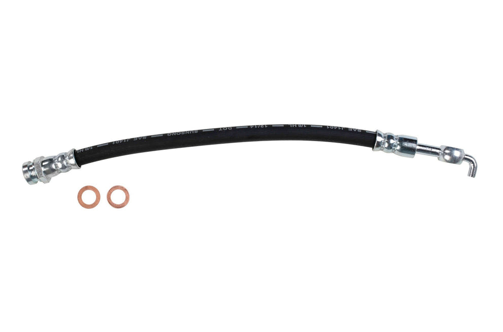 Each brake hose is precision engineered to exact fit and includes brackets, grommets, molded plastic guards, wire clips, and protective sleeves as required to ensure that all wearable parts are restored to original condition. Brake hoses meet or exceed DOT, Federal Vehicle Safety Standards (FMVSS 106) and SAE J1401 standards. All tubing is manufactured from high grade steel and electroplated with a zinc coating delivering superior corrosion and rust resistance against elements such as high humidity, road salt, water, and grime. Every brake hose is subjected to a high pressure quality assurance test before leaving the factory, ensuring trouble free installation and operation of your new hose. Brake hoses with banjo end fittings include new copper washers to ensure proper sealing