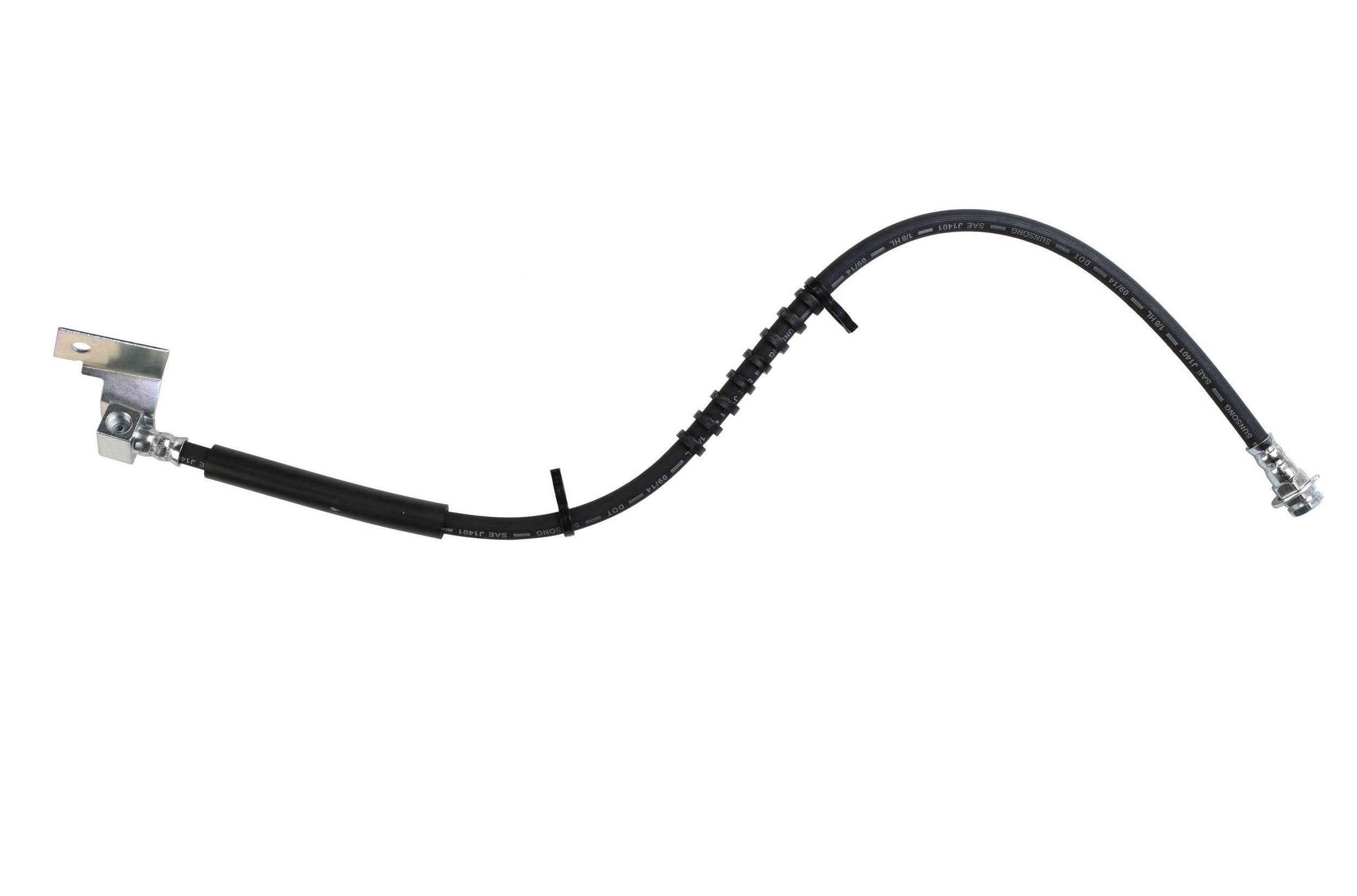 Each brake hose is precision engineered to exact fit and includes brackets, grommets, molded plastic guards, wire clips, and protective sleeves as required to ensure that all wearable parts are restored to original condition. Brake hoses meet or exceed DOT, Federal Vehicle Safety Standards (FMVSS 106) and SAE J1401 standards. All tubing is manufactured from high grade steel and electroplated with a zinc coating delivering superior corrosion and rust resistance against elements such as high humidity, road salt, water, and grime. Every brake hose is subjected to a high pressure quality assurance test before leaving the factory, ensuring trouble free installation and operation of your new hose. Brake hoses with banjo end fittings include new copper washers to ensure proper sealing
