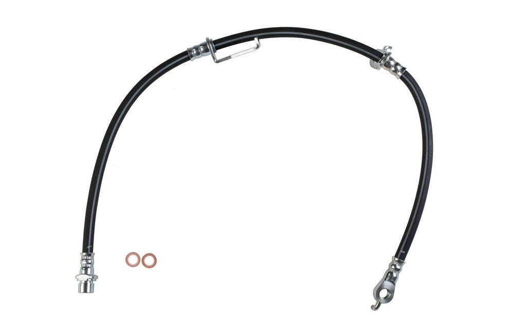 Each brake hose is precision engineered to exact fit and includes brackets, grommets, molded plastic guards, wire clips, and protective sleeves as required to ensure that all wearable parts are restored to original condition. Brake hoses meet or exceed DOT, Federal Vehicle Safety Standards (FMVSS 106) and SAE J1401 standards. All tubing is manufactured from high grade steel and electroplated with a zinc coating delivering superior corrosion and rust resistance against elements such as high humidity, road salt, water, and grime. Every brake hose is subjected to a high pressure quality assurance test before leaving the factory, ensuring trouble free installation and operation of your new hose. Brake hoses with banjo end fittings include new copper washers to ensure proper sealing