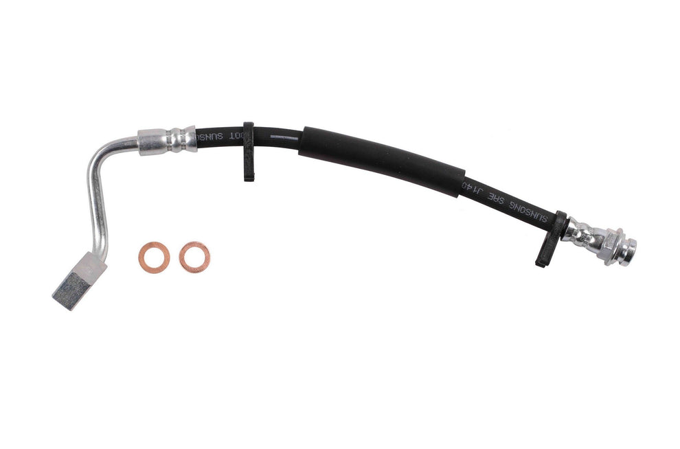 Each brake hose is precision engineered to exact fit and includes brackets, grommets, molded plastic guards, wire clips, and protective sleeves as required to ensure that all wearable parts are restored to original condition. Brake hoses meet or exceed DOT, Federal Vehicle Safety Standards (FMVSS 106) and SAE J1401 standards. All tubing is manufactured from high grade steel and electroplated with a zinc coating delivering superior corrosion and rust resistance against elements such as high humidity, road salt, water, and grime. Every brake hose is subjected to a high pressure quality assurance test before leaving the factory, ensuring trouble free installation and operation of your new hose. Brake hoses with banjo end fittings include new copper washers to ensure proper sealing