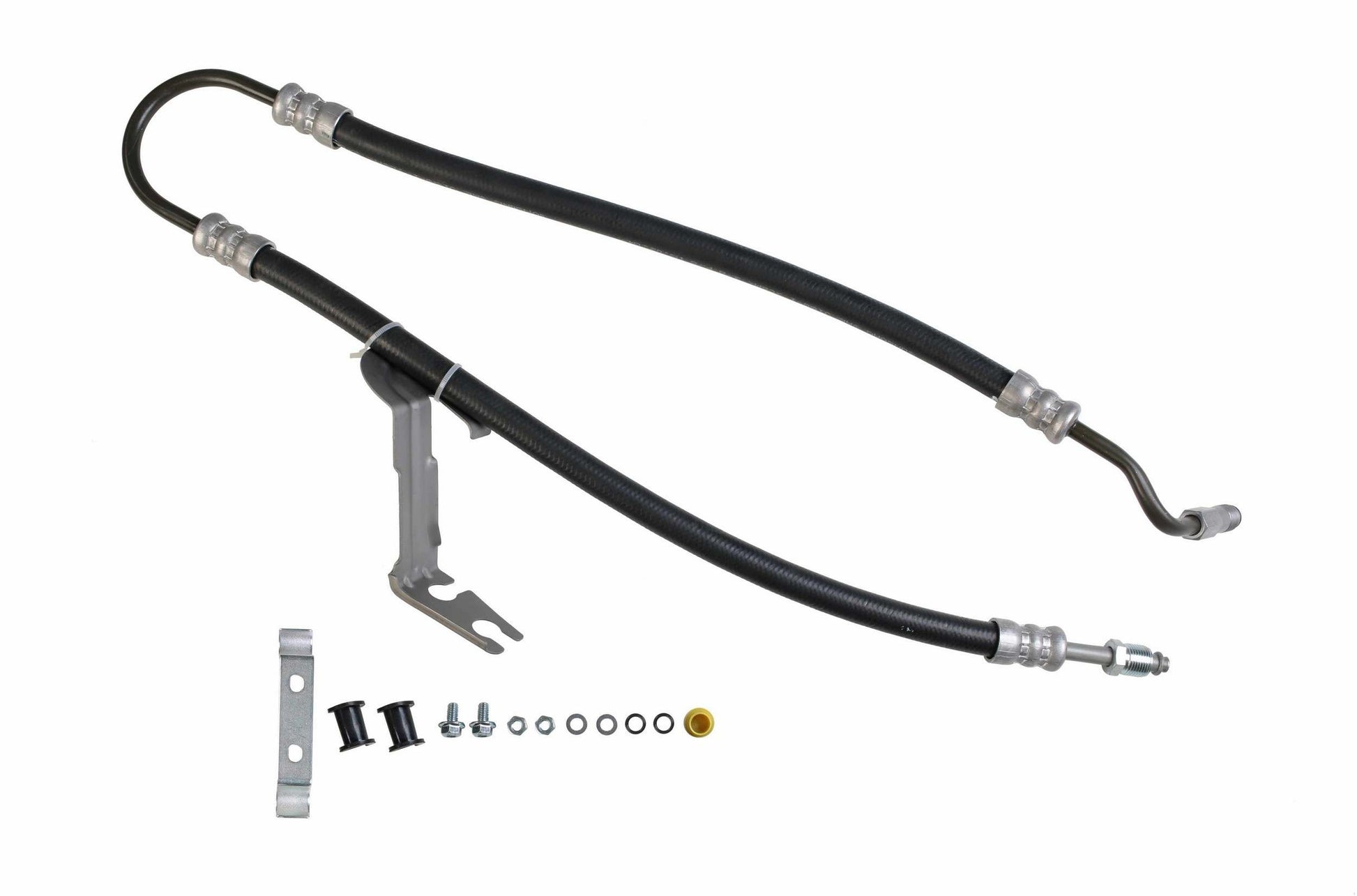 Pressure Hoses exceed original equipment performance standards with a max working pressure of 1,500 psi a burst pressure rating of 8,700 psi and a tensile strength of 1,600 lb. This provides exceptional durability and long life; All tubing is manufactured from high grade steel and electroplated with a zinc coating delivering superior corrosion and rust resistance against elements such as high humidity, road salt, water, and grime; Each hose is precision engineered to exact fit and includes brackets, grommets, switch ports, heat shields, bushings, and protective sleeves as required for to ensure that all wearable parts are restored to original condition; Every hose is subjected to a high pressure quality assurance test before leaving the factory, ensuring trouble free installation and operation of your new hose