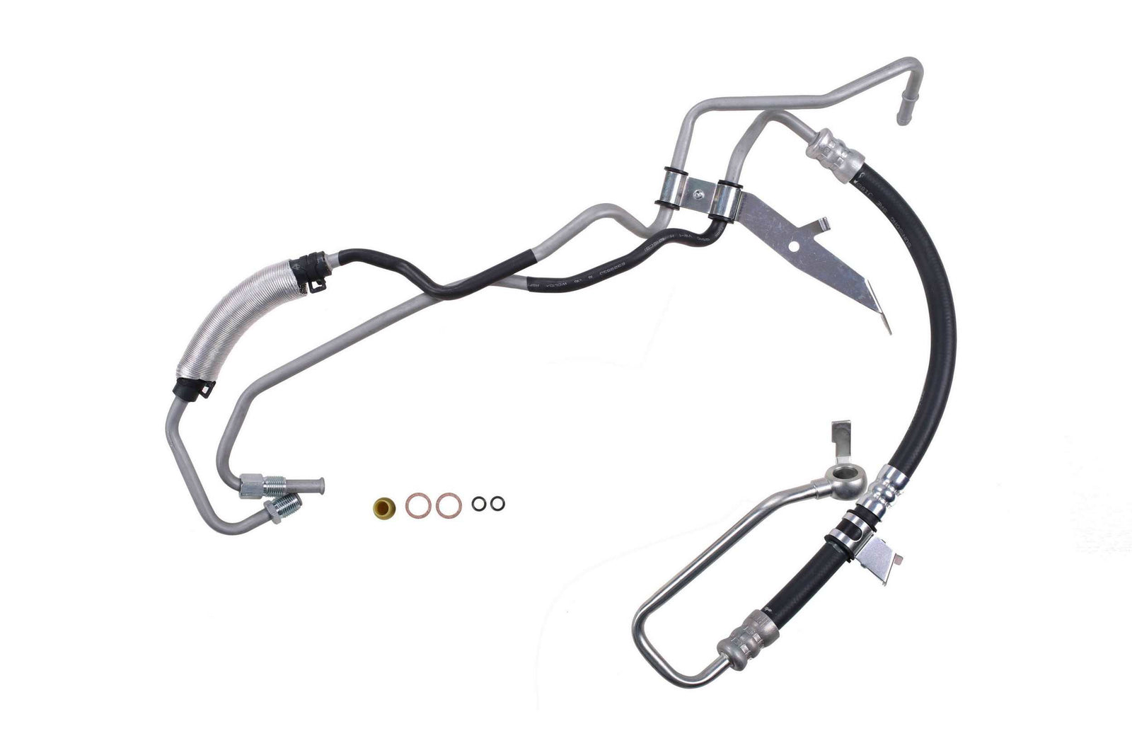 Exact replacement of original equipment pressure hose and return hose assembly. The return and pressure hose are pre-assembled with brackets, providing easy installation and reduced labor time compared to replacement versions sold as individual hoses. Pressure and Return Assemblies are precision engineered to exact fit and includes brackets, grommets, switch ports, heat shields, bushings, and protective sleeves as required for to ensure that all wearable parts are restored to original condition. Pressure Hoses exceed original equipment performance standards with a max working pressure of 1,500 psi, a burst pressure rating of 8,700 psi, and a tensile strength of 1,600 lb. which provides exceptional durability and long life. Every pressure hose is subjected to a high pressure quality assurance test before leaving the factory, ensuring trouble free installation and operation of your new hose.