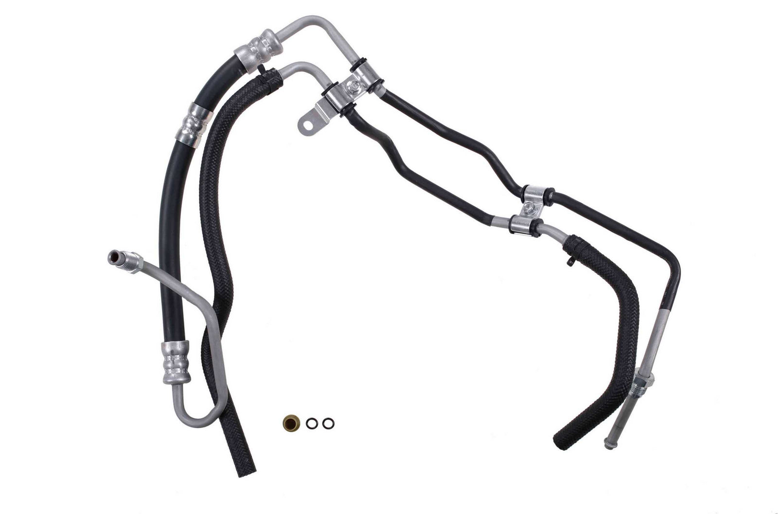 Exact replacement of original equipment pressure hose and return hose assembly. The return and pressure hose are pre-assembled with brackets, providing easy installation and reduced labor time compared to replacement versions sold as individual hoses. Pressure and Return Assemblies are precision engineered to exact fit and includes brackets, grommets, switch ports, heat shields, bushings, and protective sleeves as required for to ensure that all wearable parts are restored to original condition. Pressure Hoses exceed original equipment performance standards with a max working pressure of 1,500 psi, a burst pressure rating of 8,700 psi, and a tensile strength of 1,600 lb. which provides exceptional durability and long life. Every pressure hose is subjected to a high pressure quality assurance test before leaving the factory, ensuring trouble free installation and operation of your new hose.
