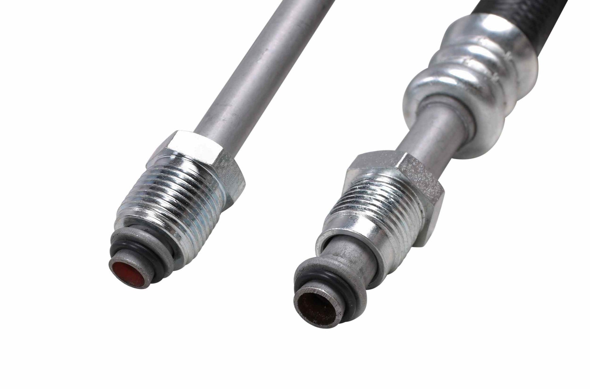 Exact replacement of original equipment pressure hose and return hose assembly. The return and pressure hose are pre-assembled with brackets, providing easy installation and reduced labor time compared to replacement versions sold as individual hoses. Pressure and Return Assemblies are precision engineered to exact fit and includes brackets, grommets, switch ports, heat shields, bushings, and protective sleeves as required for to ensure that all wearable parts are restored to original condition. Pressure Hoses exceed original equipment performance standards with a max working pressure of 1,500 psi, a burst pressure rating of 8,700 psi, and a tensile strength of 1,600 lb. which provides exceptional durability and long life. Every pressure hose is subjected to a high pressure quality assurance test before leaving the factory, ensuring trouble free installation and operation of your new hose.