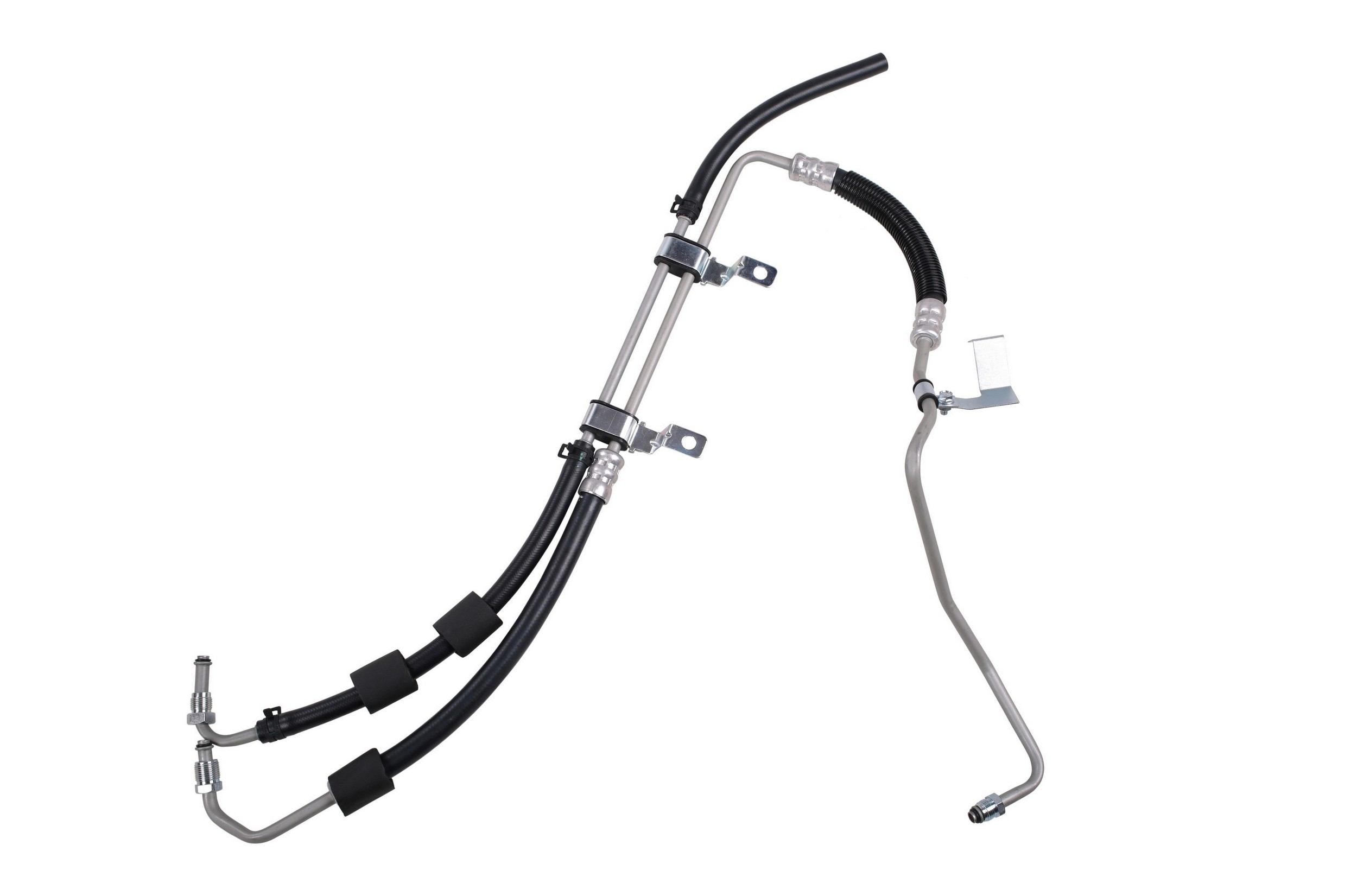 Exact replacement of original equipment pressure hose and return hose assembly. The return and pressure hose are pre-assembled with brackets, providing easy installation and reduced labor time compared to replacement versions sold as individual hoses. Pressure and Return Assemblies are precision engineered to exact fit and includes brackets, grommets, switch ports, heat shields, bushings, and protective sleeves as required for to ensure that all wearable parts are restored to original condition. Pressure Hoses exceed original equipment performance standards with a max working pressure of 1,500 psi, a burst pressure rating of 8,700 psi, and a tensile strength of 1,600 lb. which provides exceptional durability and long life. Every pressure hose is subjected to a high pressure quality assurance test before leaving the factory, ensuring trouble free installation and operation of your new hose.