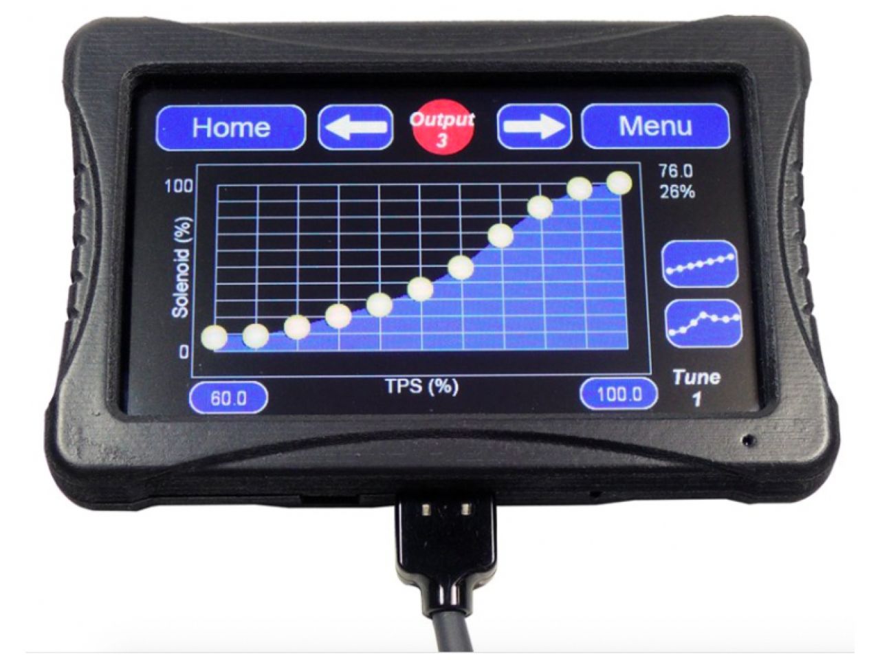 Optional 4 inch touch screen display can be connected to view and adjust common tuning parameters on the go without the need for a laptop. Screen is configured to only read pre-configured paramaters.